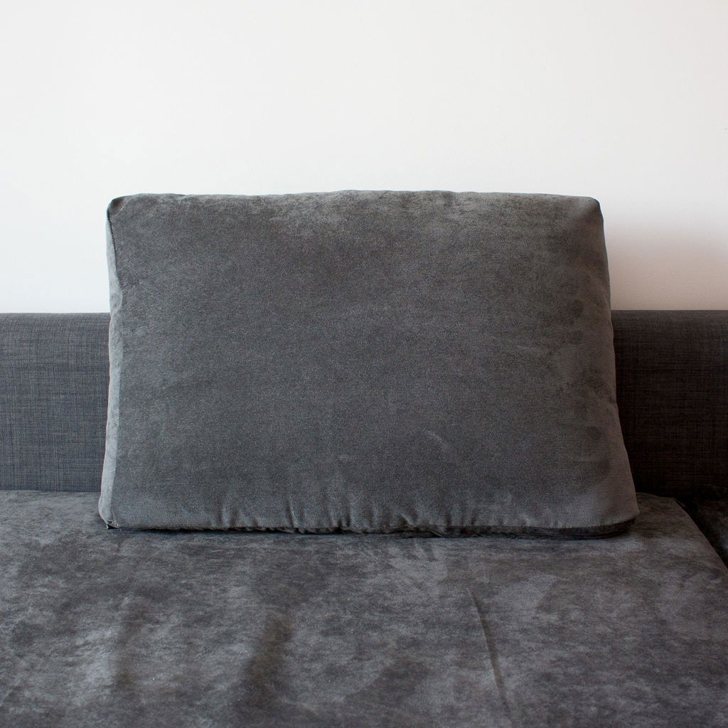 Pokrowiec został zaprojektowany dla poduszek o wymiarach 30x65x10 cm.