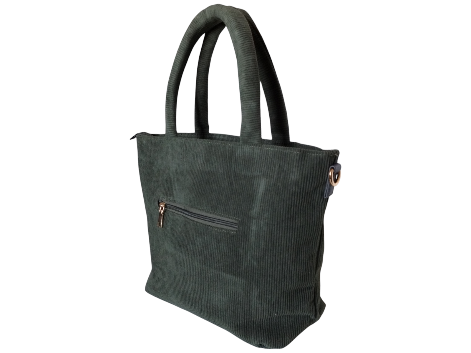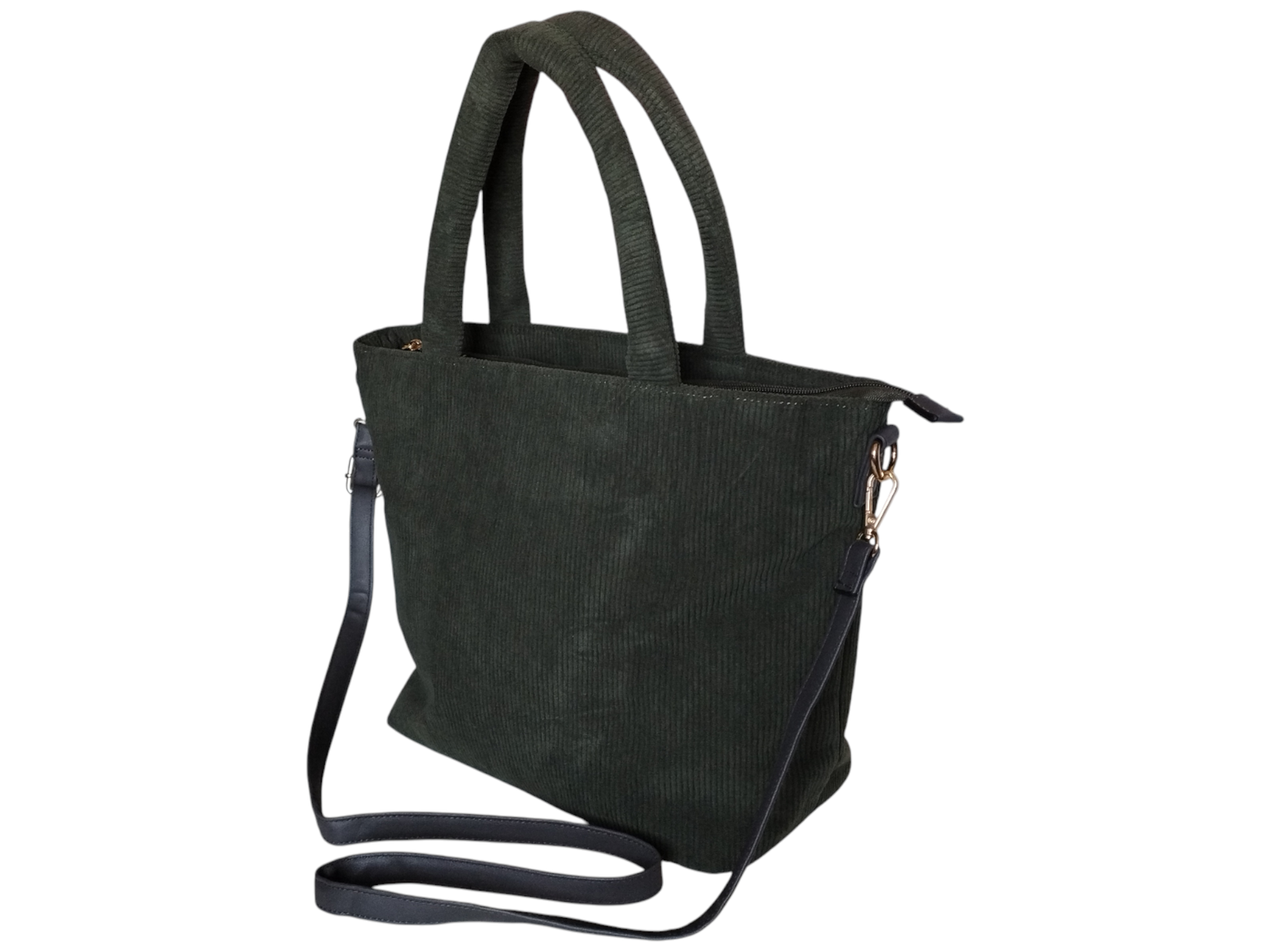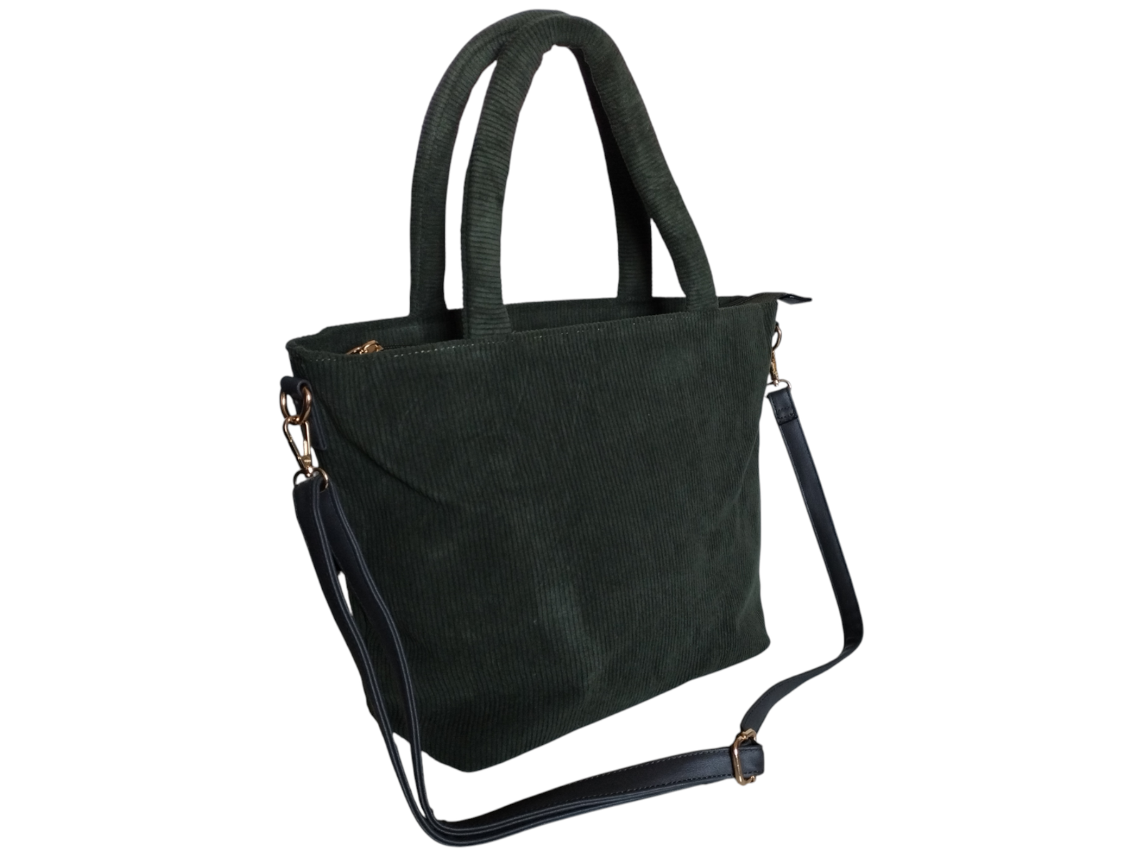Sztruksowa Shopperka Damska Z Uchwytami Na Ramię I Dodatkowym Reg. Paskiem