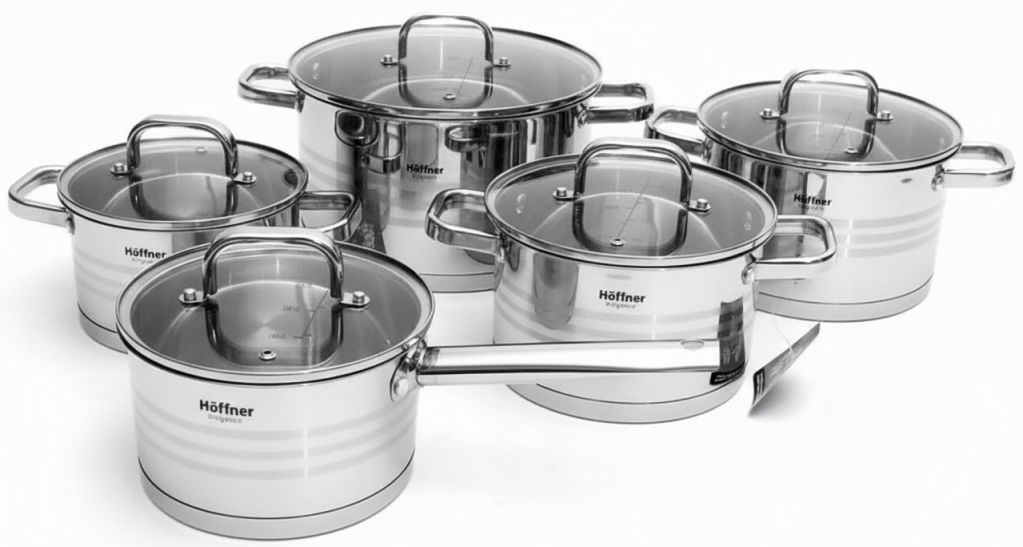KOMPLET GARNKÓW STALOWYCH HOFFNER ® 10 ELEM + komplet sztućców Hoffner 30el połysk