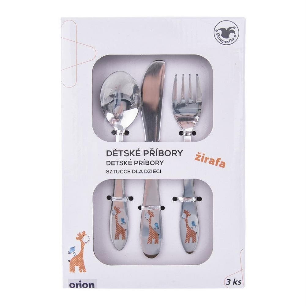 DZIECIĘCE - Zestaw sztućców dla dzieci z motywem żyrafy. W zestawie: 1x widelec (15,5 x 2,5 cm), 1x nóż (17 x 2 cm) oraz 1x łyżeczka (15,5 x 3,5 cm).