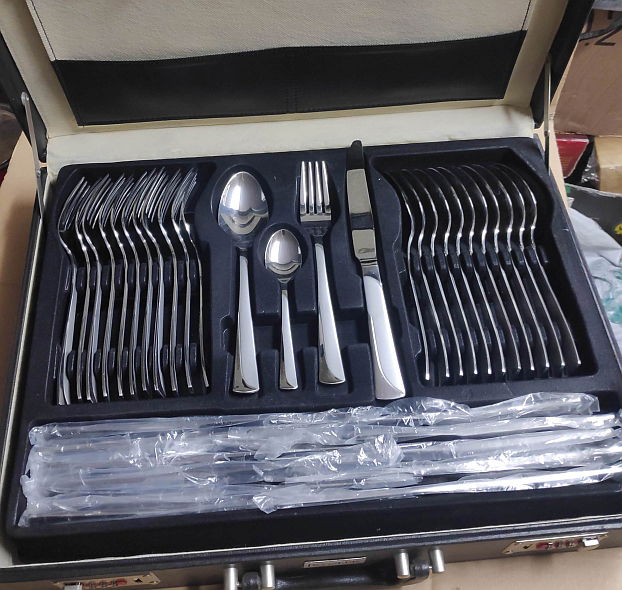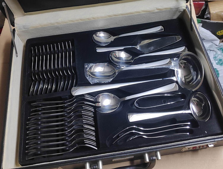 Komplet sztućców satynowanych Rossler 72 el w walizce. Obniżona cena- walizka rozklejona na jednym boku.