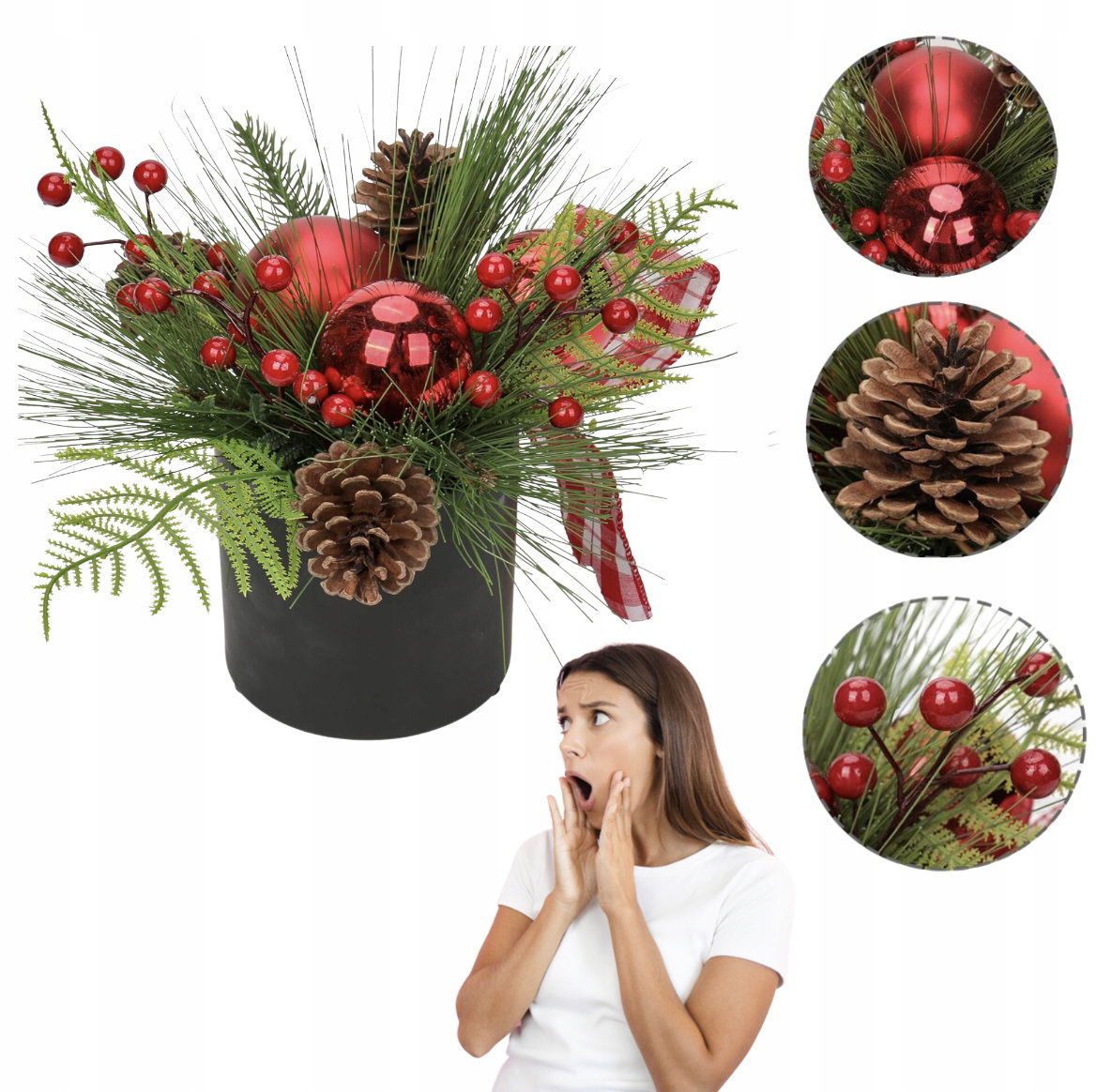 Idealna do ozdabiania stołów, parapetów, półek czy jako element dekoracyjny w Twoim domu lub biurze. Wprowadź do swojego wnętrza świąteczny nastrój bez konieczności dbania o pielęgnację!