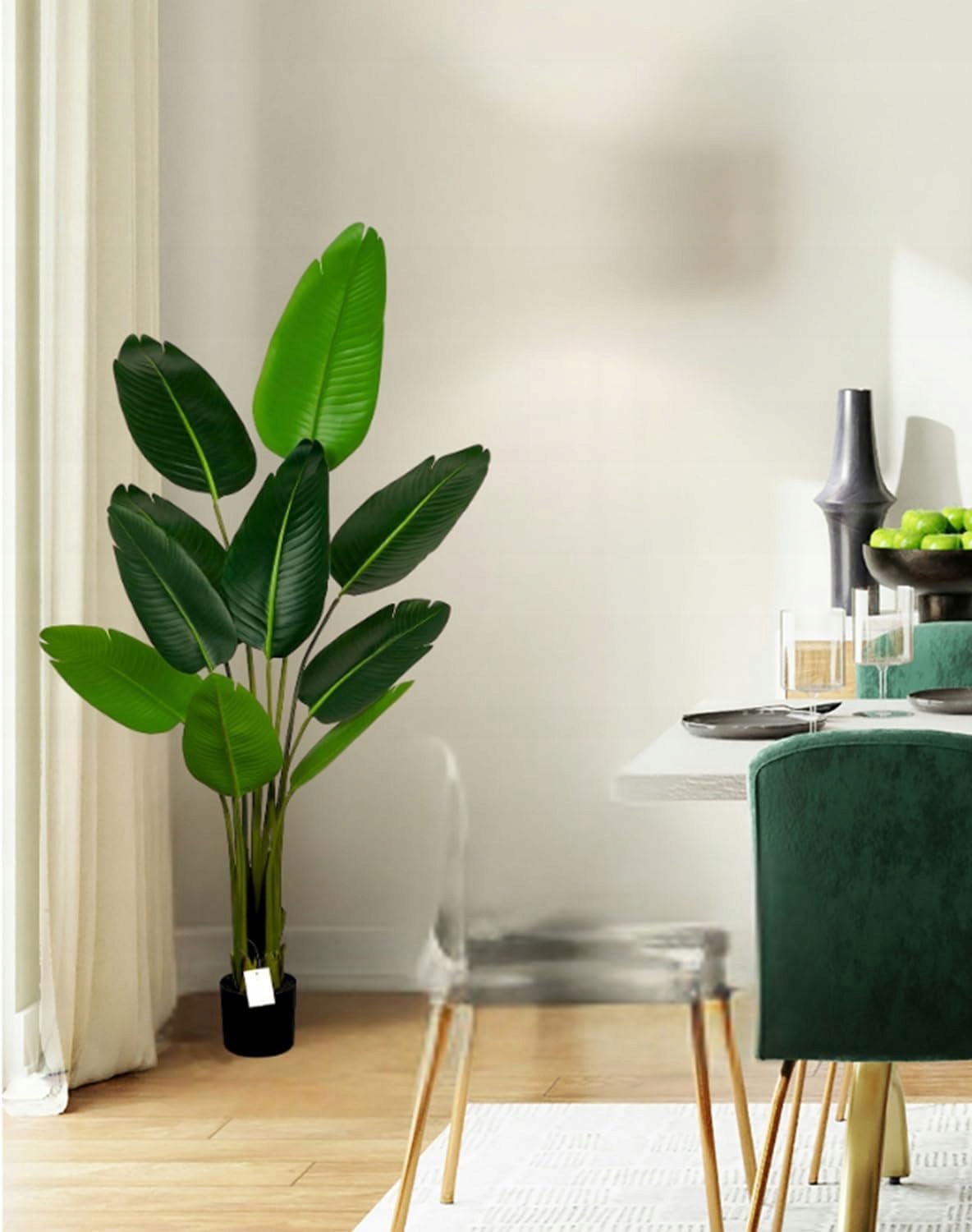 ✅ Realistyczna tekstura liści – wygląda jak prawdziwa tropikalna roślina bananowa.