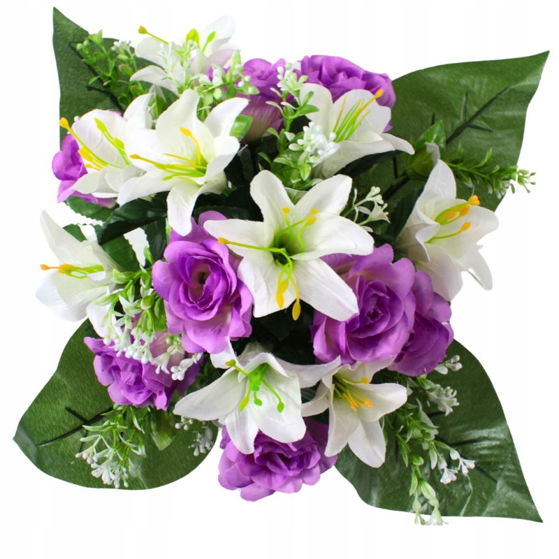 Sztuczne kwiaty na cmentarz KOMPOZYCJA nagrobkowa WIĄZANKA róże LILIE białe