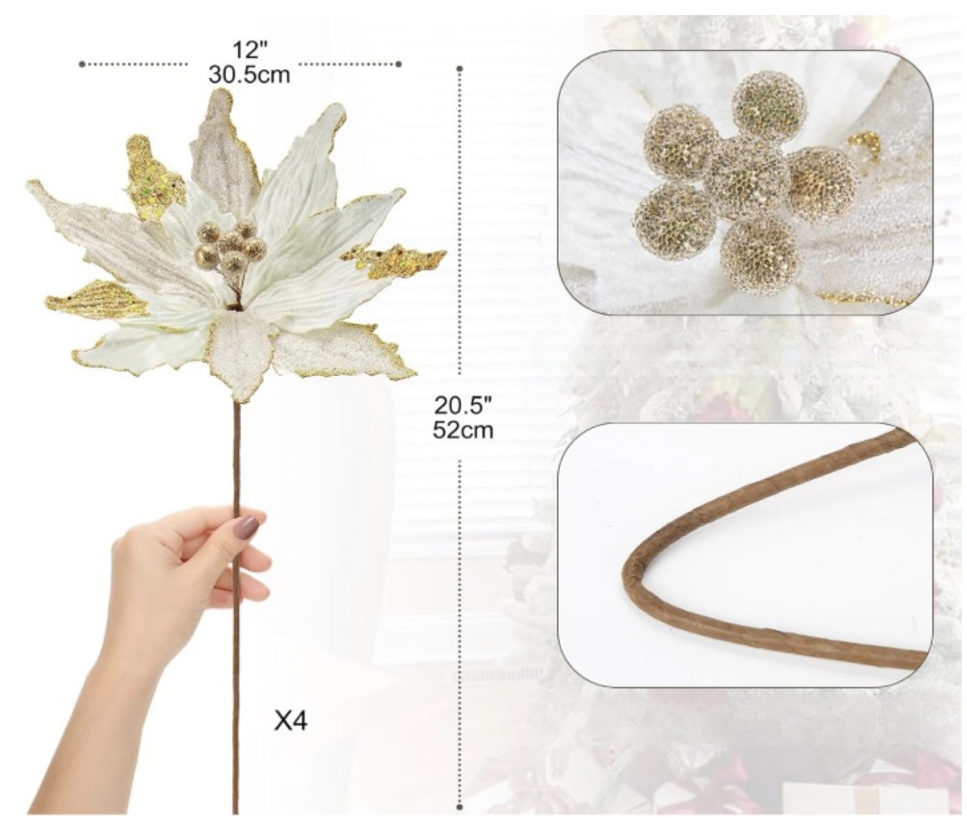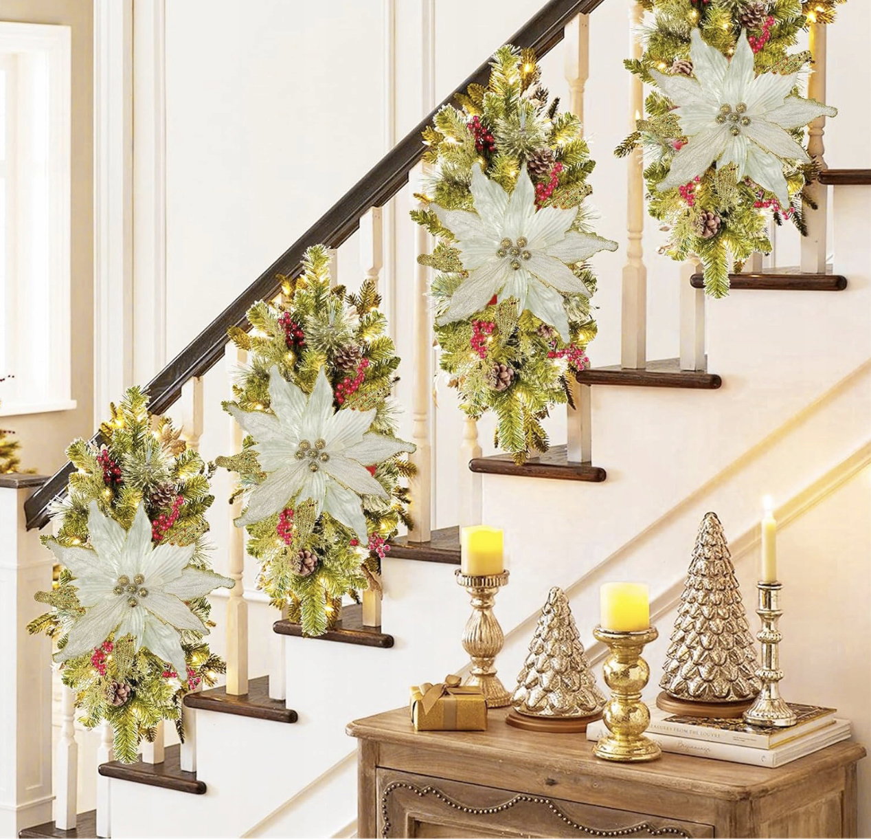 Sztuczny kwiat poinsecji piękna ozdoba na choinkę Briful 4 szt. 30,5x52 cm