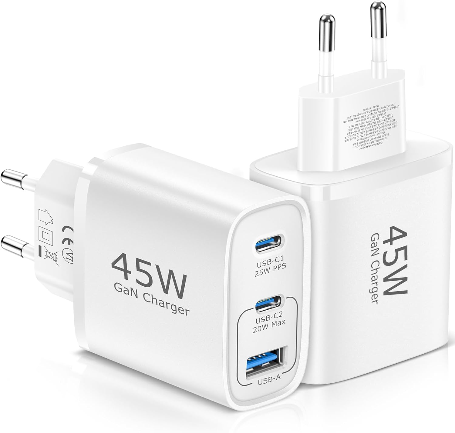 - Szybkie ładowanie: 45 W USB-C GAN i inne wiodące protokoły szybkiego ładowania, idealne do iPhone'a, Samsunga i większości smartfonów na rynku. Całkowita moc wyjściowa 3 portów wynosi 45 W, złącze typu C może osiągnąć do 25 W, a port USB-A zapewnia stabilną moc wyjściową 15 W. Pożegnaj się z długimi procesami ładowania.