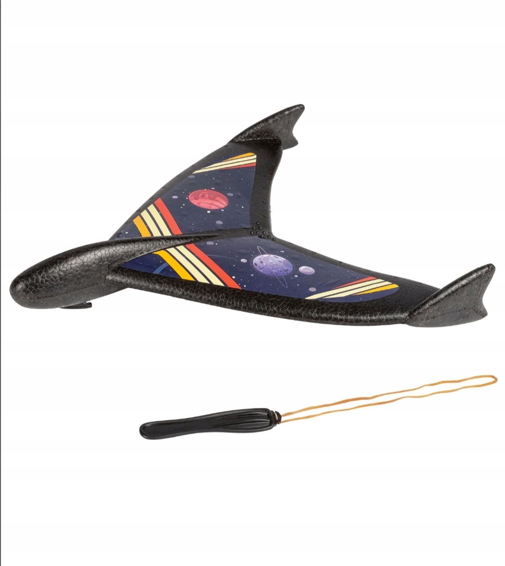 • Wymiary / pojemność: szybowiec ok. 5,5 × 31 × 30 cm, katapulta ok. 9 × 2 × 0,5 cm