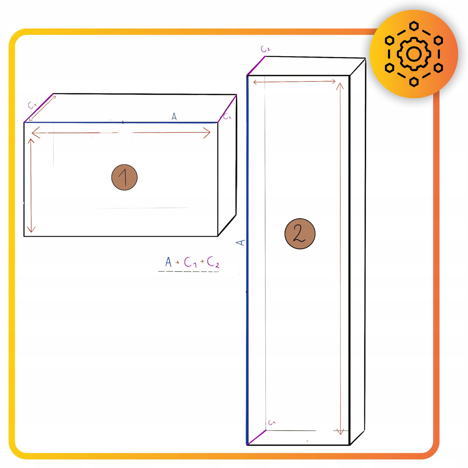 A (długość siedziska) + C1 (grubość z jednej strony) + C2 (grubość z drugiej strony) ÷ 10 cm × 9,90 zł