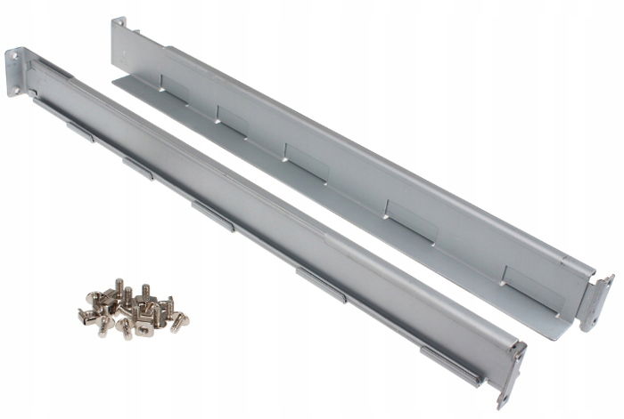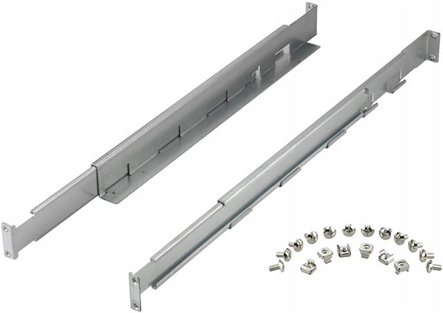 Komplet dówch regulowanych szyn o długości 430mm służacy do montażu urządzeń typu: UPS, switch, serwer itd, które nie posiadają własnych uchwytów motażowych RACK 19. Posiadają regulacje głebokości od 430mm do 740mm. Prosty montaż. Pasuje do modeli UPS: VFI Series: VFI 1000/1000R/1500/1500R/2000/2000R/3000R/3000RM/6000R/10000R LCD