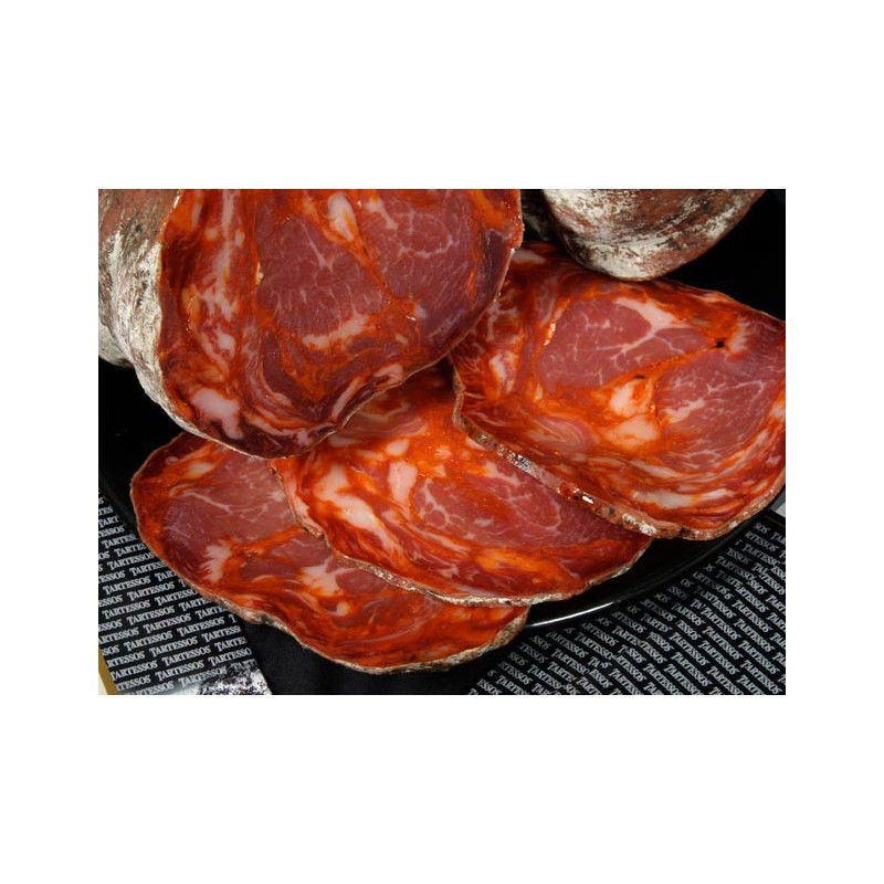 Iberyjska kiełbasa Morcón produkuje się z mieszanki szlachetnych mięs i boczku świń iberyjskich karmionych żołędziami.