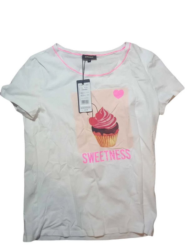 Koszulka damska More & More – styl i wygoda na co dzień! 👕 Nowa koszulka damska marki More & More, wykonana z wysokiej jakości mieszanki bawełny i elastanu, to idealny wybór dla każdej kobiety ceniącej komfort i modny wygląd. Cechy Produktu: ✔ Materiał: Mieszanka bawełny i elastanu – przyjemny w dotyku, zapewnia elastyczność i komfort noszenia. ✔ Kolor: Klasyczny z nadrukiem (Print) dla subtelnego, modnego stylu. ✔ Rozmiar: 36 (europejski). ✔ Wymiary: Długość całkowita: 59 cm. Szerokość pod pachami: 43 cm. ✔ Krój: Taliowany, z okrągłym dekoltem, idealnie podkreślający sylwetkę. ✔ Stan: Nowa z metką.