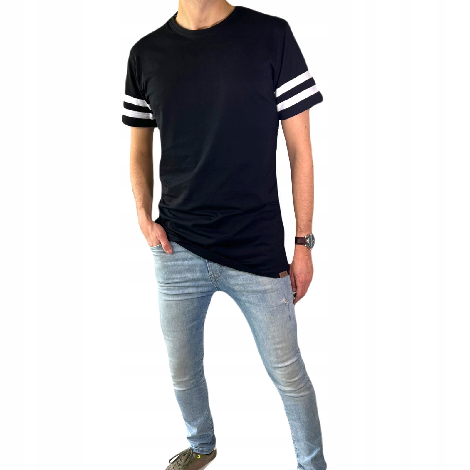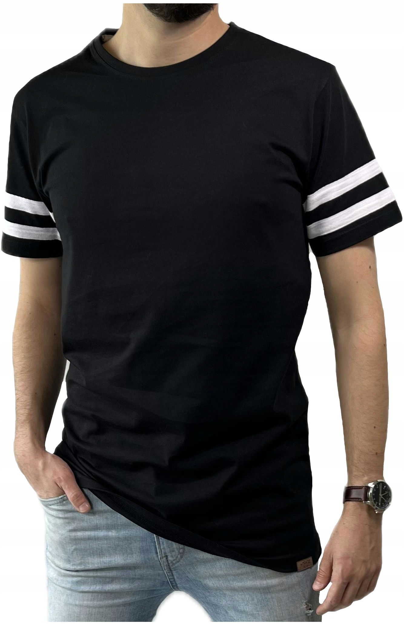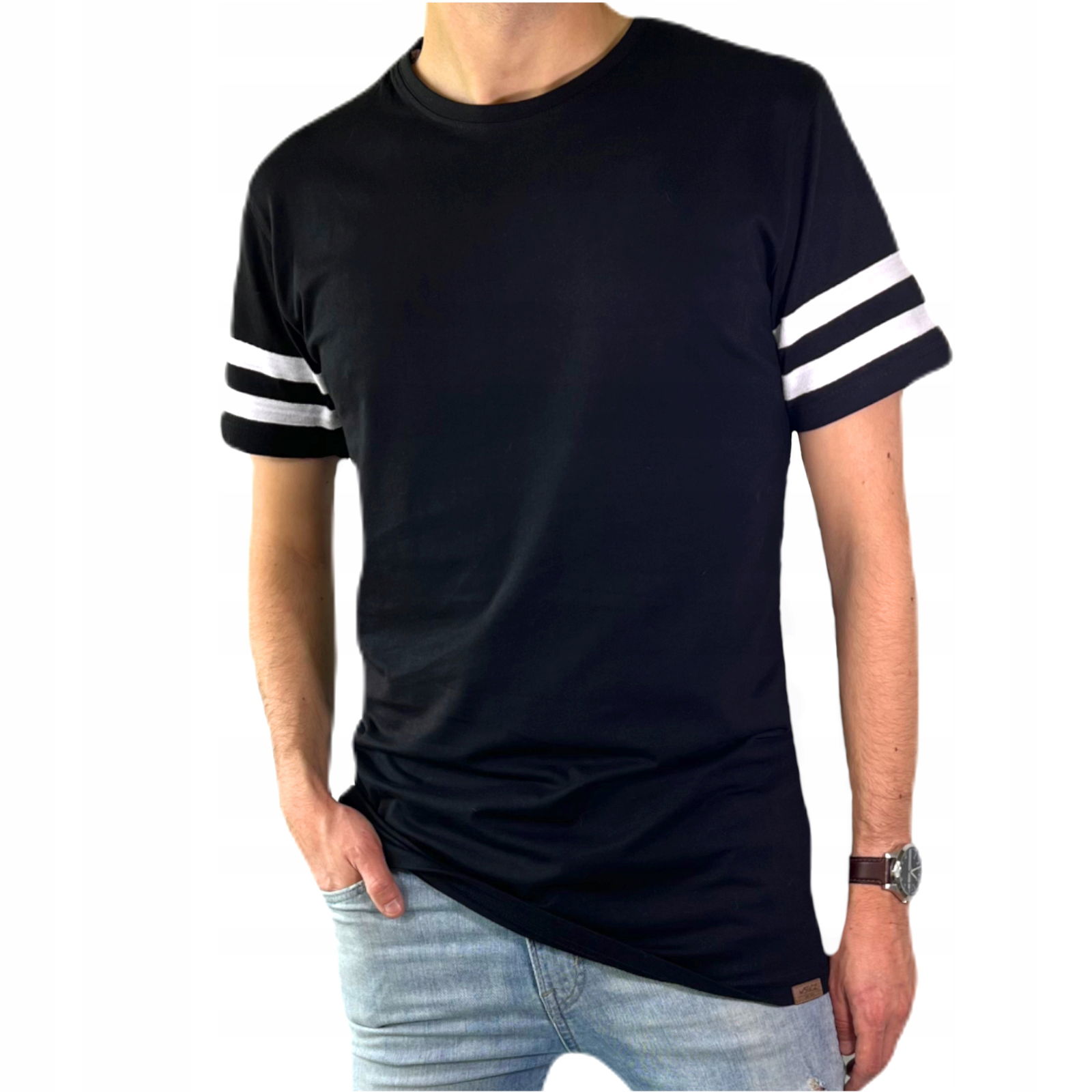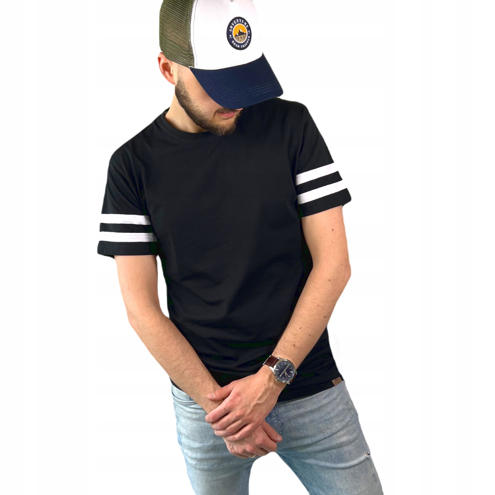 T-shirt męski czarny z krótkim rękawem i białymi paskami na ramionach XL