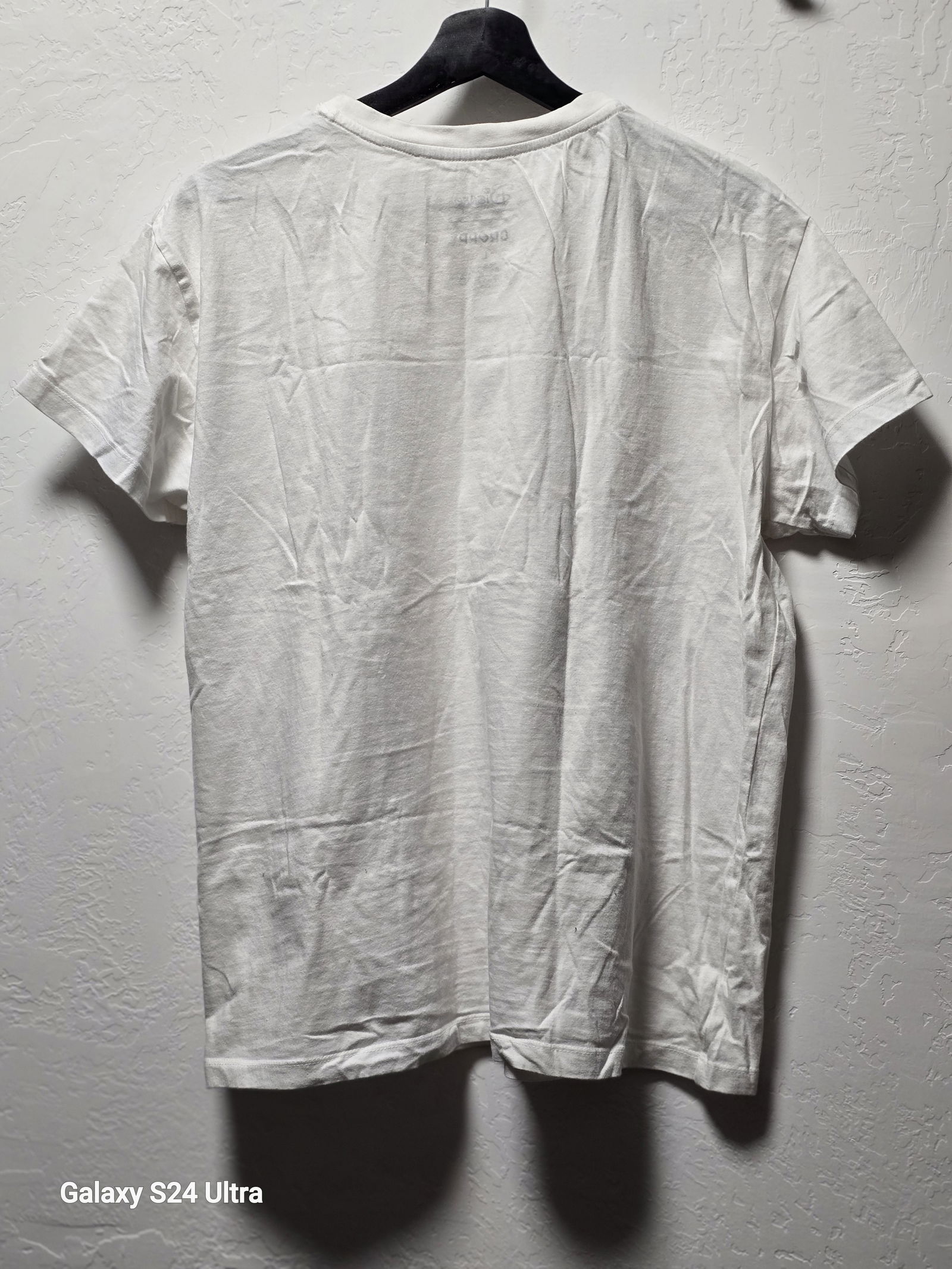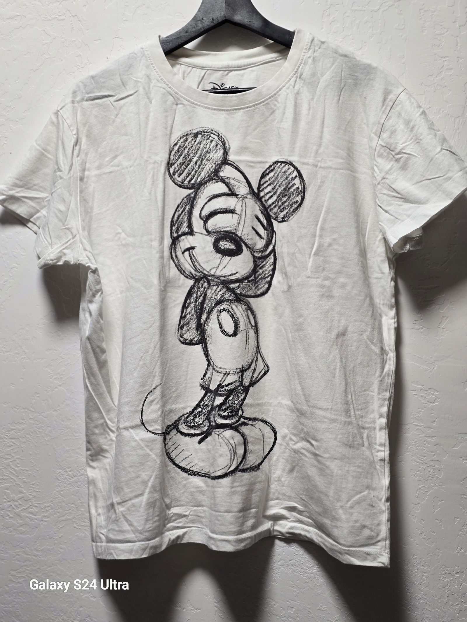 Nowa, nigdy nieużywana koszulka w rozmiarze M, choć nie posiada już oryginalnej metki. Jest to klasyczny biały T-shirt z efektownym nadrukiem postaci w stylu szkicu, który nadaje całości unikatowego i artystycznego charakteru. Koszulka została wykonana z wysokiej jakości materiału, co gwarantuje komfort noszenia oraz trwałość nadruku.