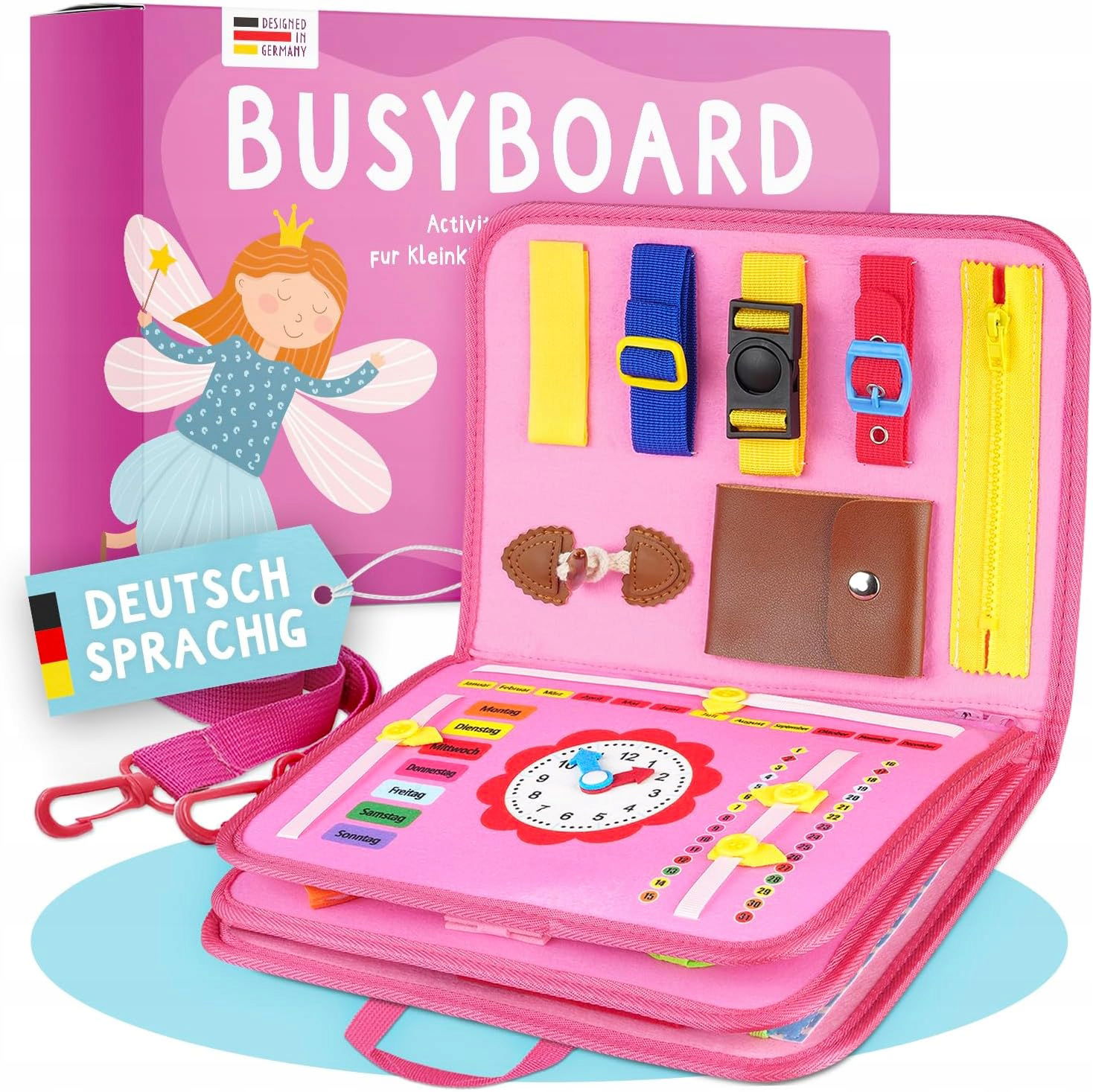 Tablica aktywności edukacyjna Montessori dla dzieci | Busy Board z napisami w języku niemieckim