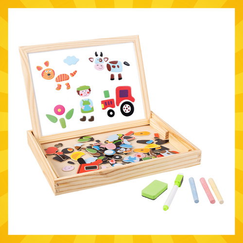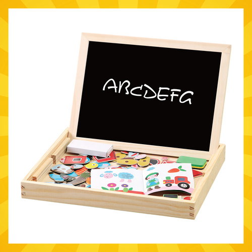Tablica edukacyjna magnetyczna Kruzzel – dwustronna 108 el. w drewnianej skrzynce