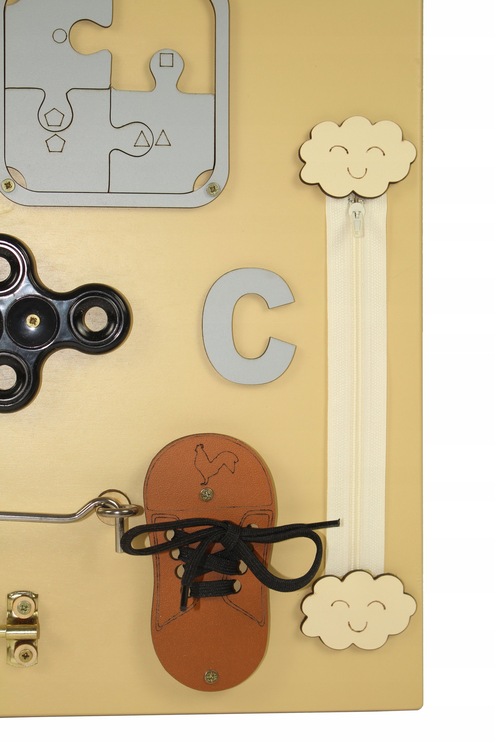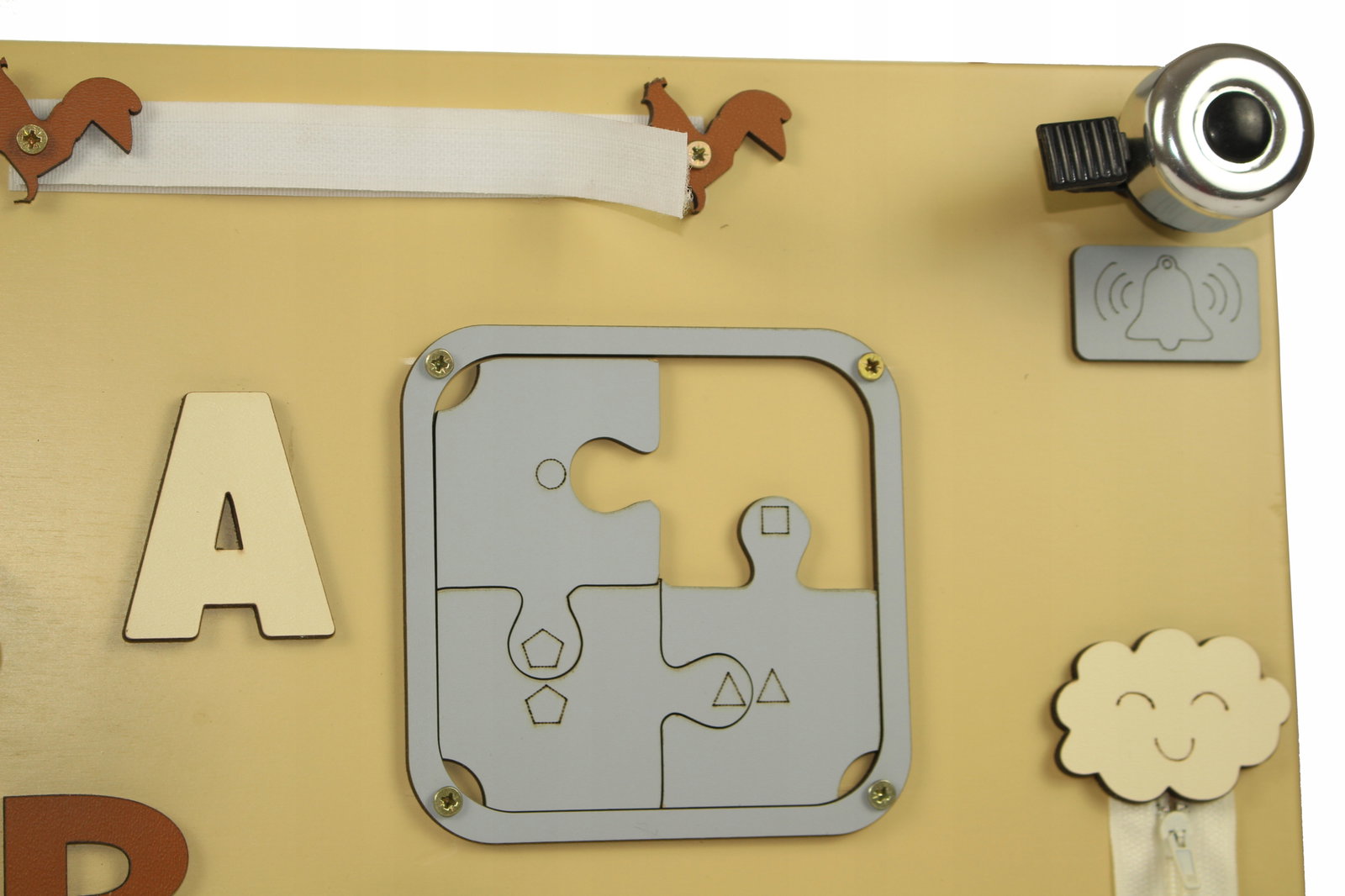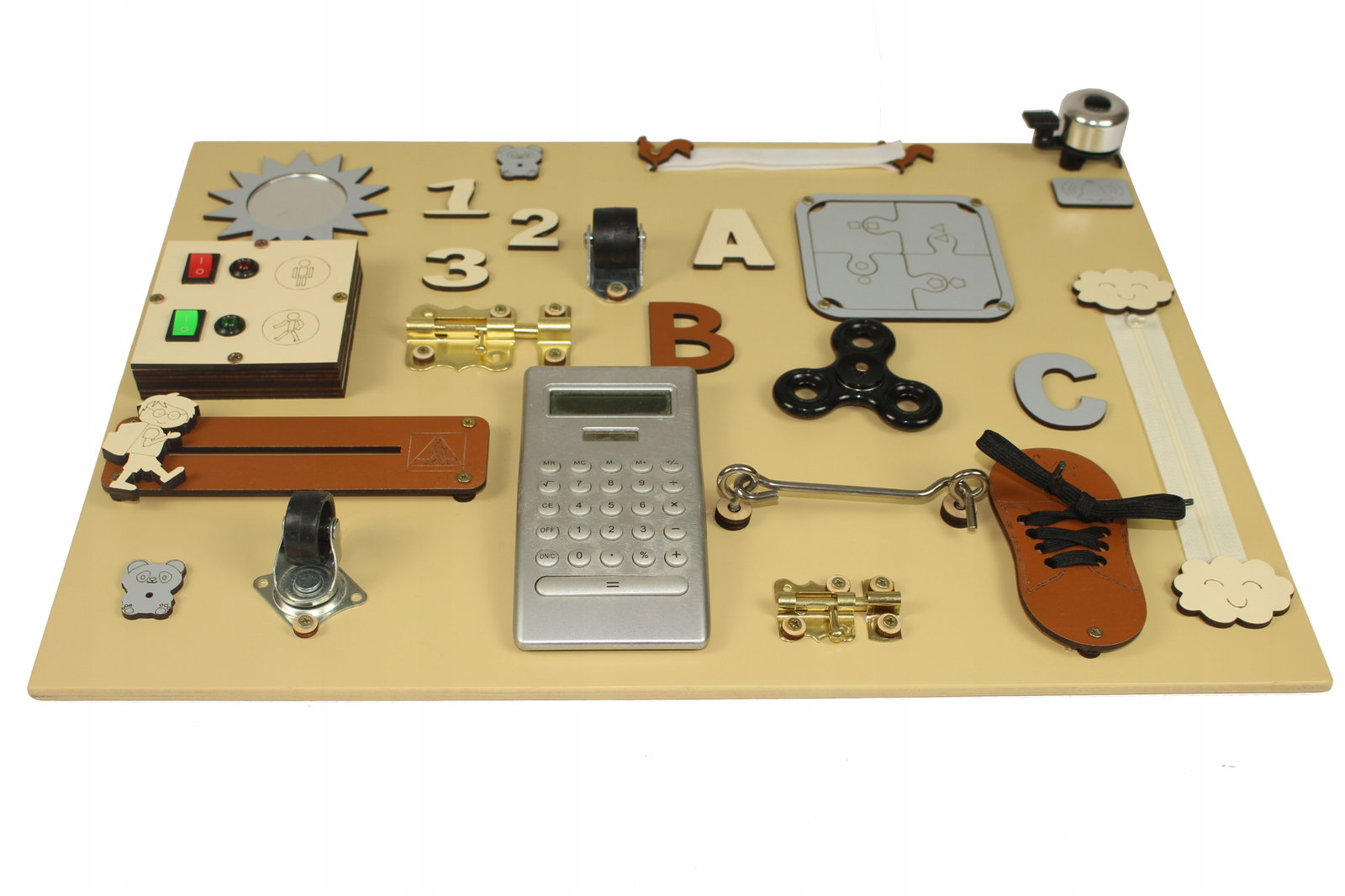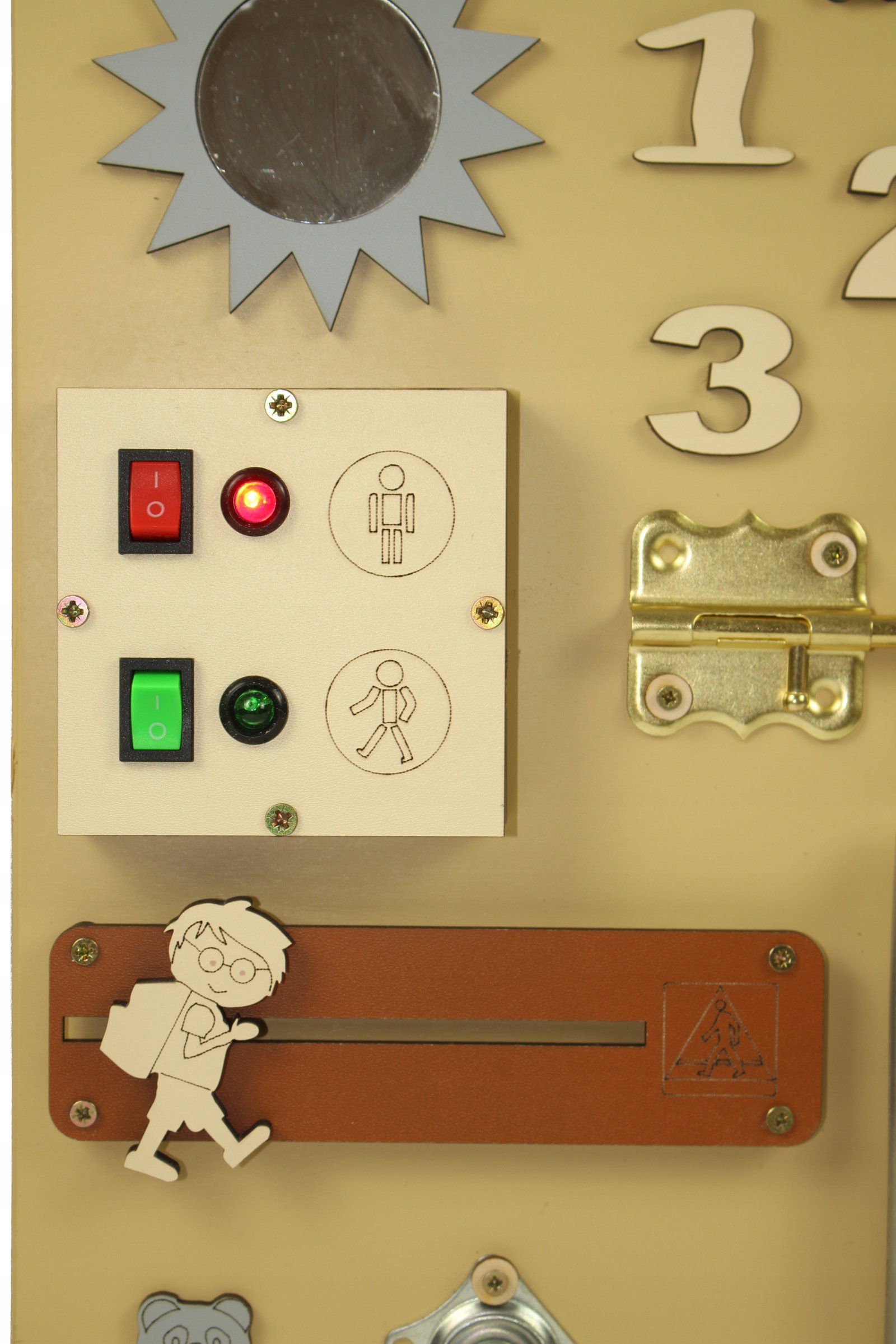 Tablica sensoryczna to świetny pomysł na kreatywną zabawę dla Twojej Pociechy. Nauka przez zabawę to najlepszy sposób na prawidłowy rozwój dzieci. Tablica jest idealnym miejscem na ćwiczenie pierwszych literek, cyferek oraz zasad panujących na przejściach dla pieszych. Odpowiednio wyselekcjonowane elementy ruchome i grające sprawią, że Twoje dziecko rozwinie swoją kreatywność oraz zdolności manualne. Dodatkowo pobudzi to w nim pomysłowość i zachęci do eksplorowania otaczającego go świata.