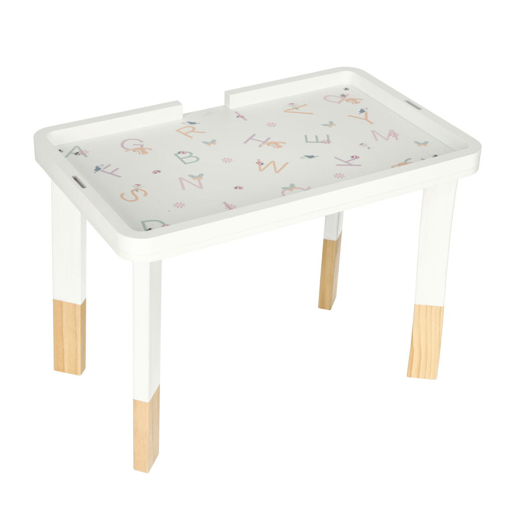 - estetyczny design – stolik cechuje się pięknym designem, który pasuje do każdego pokoju dziecięcego i zachęca do zabawy
