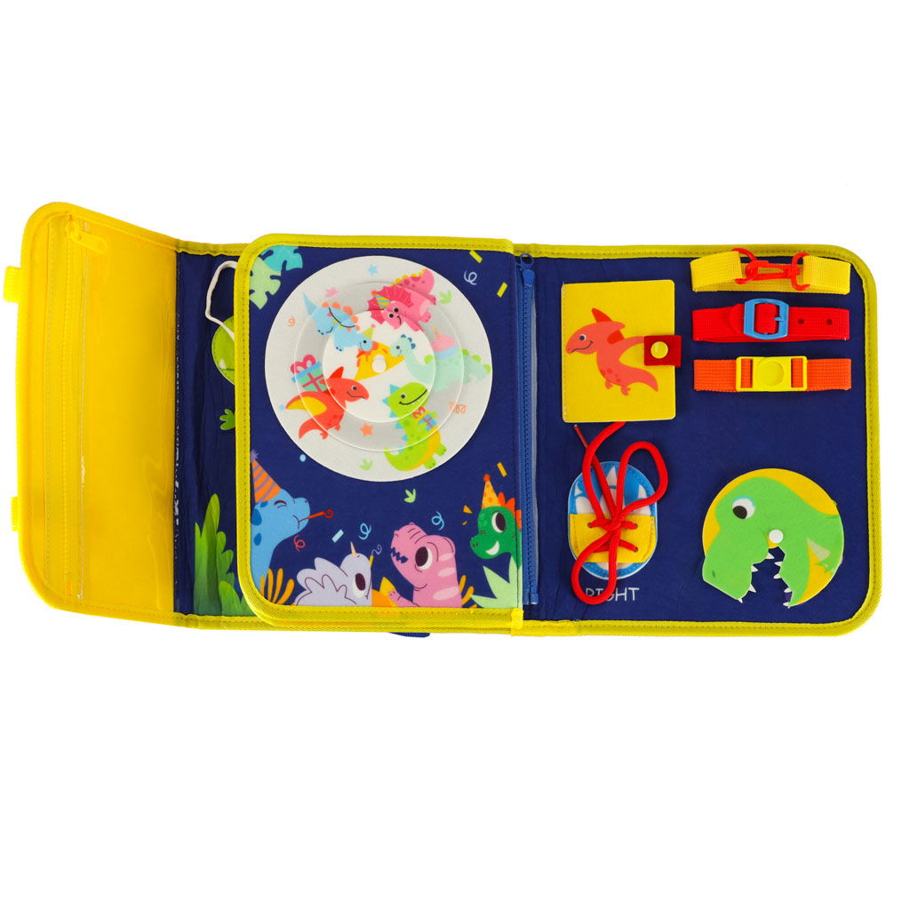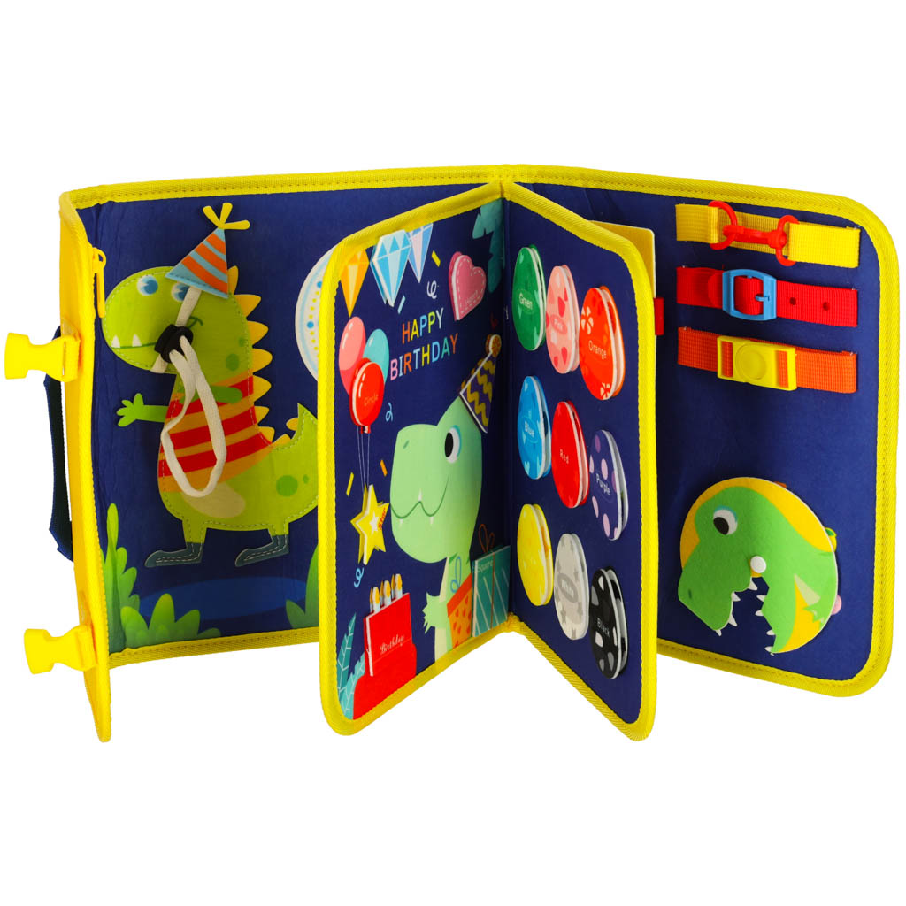 ROZWIJAJĄCA ZABAWA NA KAŻDEJ STRONIE - Każda część tej kreatywnej tablicy oferuje inne aktywności – od ćwiczeń manualnych, przez naukę liczb, aż po dopasowywanie kolorowych elementów. Dziecko trenuje umiejętności takie jak zapinanie, odpinanie czy wiązanie, rozwijając tym samym koordynację ruchową oraz samodzielność. Dzięki scenkom z bajkowymi księżniczkami maluch może tworzyć własne stylizacje, rozwijając poczucie estetyki oraz wyobraźnię.