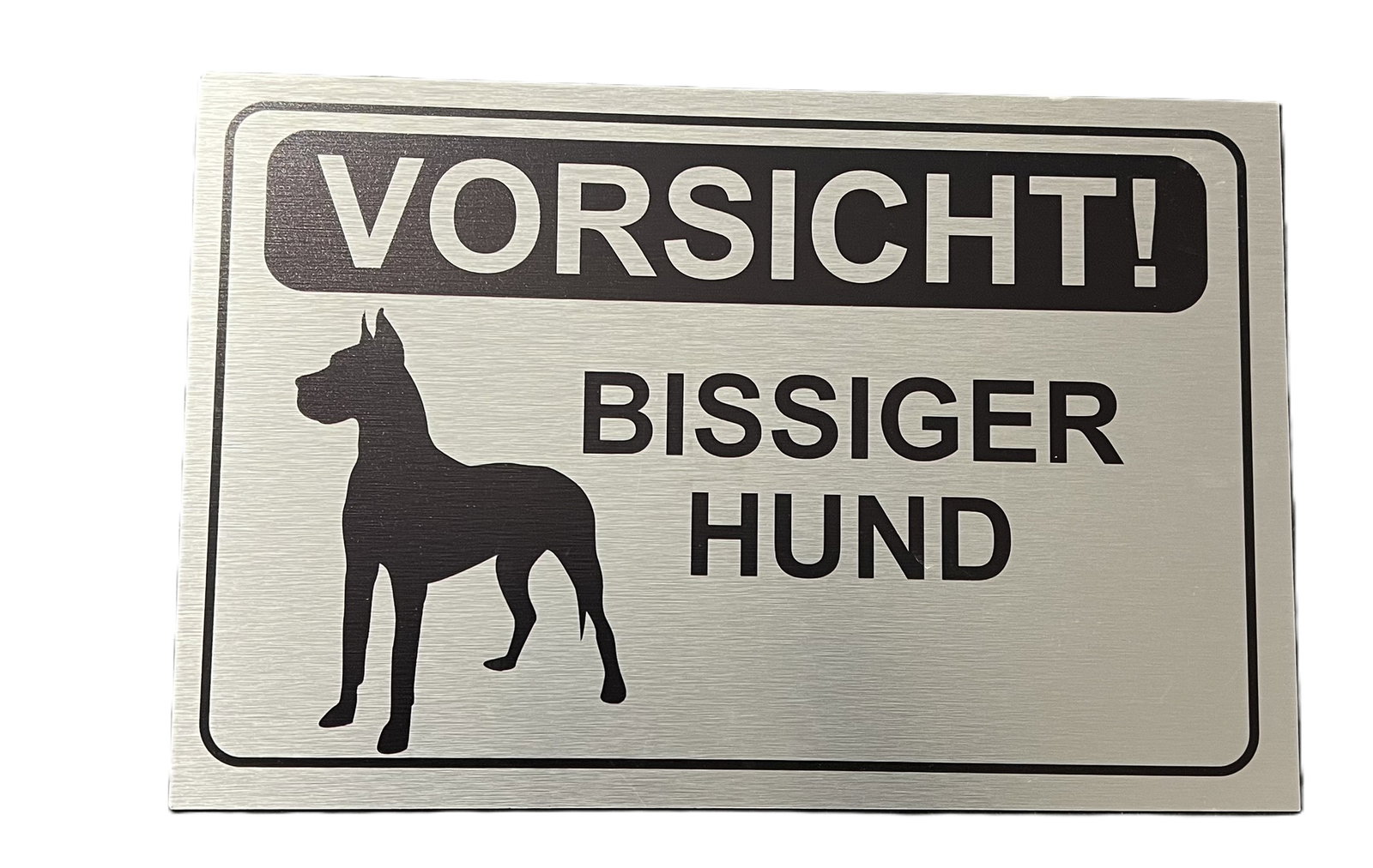 Tabliczka ostrzegawcza o psie Vorsicht! Bissiger Hund srebrna 32 cm x 21 cm