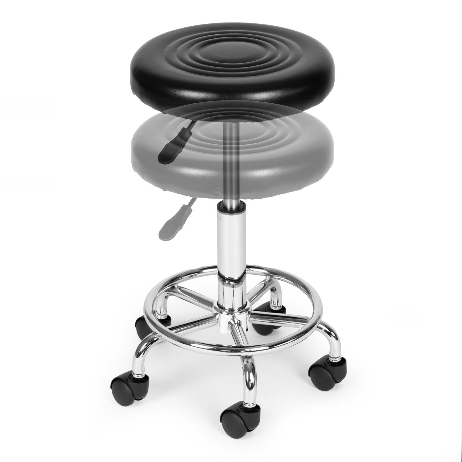 Pneumatyczny podnośnik umożliwia płynną i szybką regulację wysokości, dostosowując stołek do indywidualnych potrzeb użytkownika. Pod siedziskiem znajduje się specjalna dźwignia, której użycie spowoduje obniżenie lub podwyższenie siedziska. Dzięki temu łatwo utrzymać ergonomiczną pozycję, a takżezmniejszyć napięcie w plecach oraz nogach.