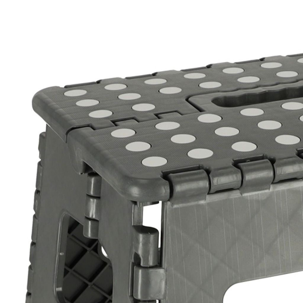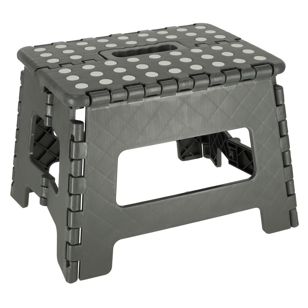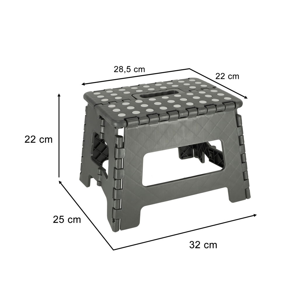 PRAKTYCZNY SZARY STOŁEK - Potrzebujesz pomocy w dosięgnięciu do najwyższych półek w kuchni lub w garderobie? W takim razie przyda Ci się praktyczny stołek, dzięki któremu bez problemu dostaniesz się w każde trudnodostępne miejsce! Optymalna wysokość sprawia, że taboret jest uniwersalny i przydatny w różnych sytuacjach.