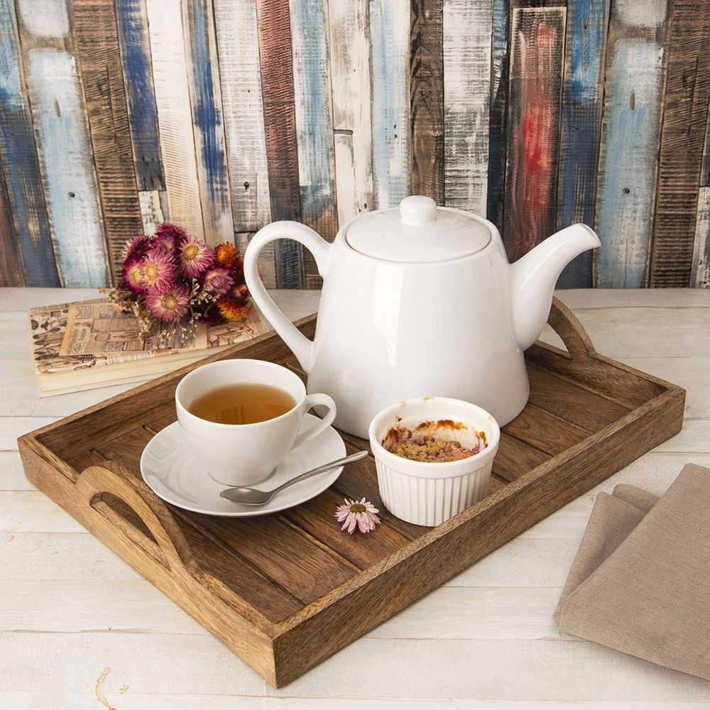 UNIWERSALNA - Taca posiada uniwersalne zastosowanie, wykorzystamy ją do serwowania oraz przenoszenie szklanek, dań, dzbanków do kawy. Możemy serwować na niej śniadania, kolacje oraz desery. Doskonale sprawdzi się także jako podstawka pod różnego rodzaju kompozycje ozdobne, doniczki z ziołami lub świece.