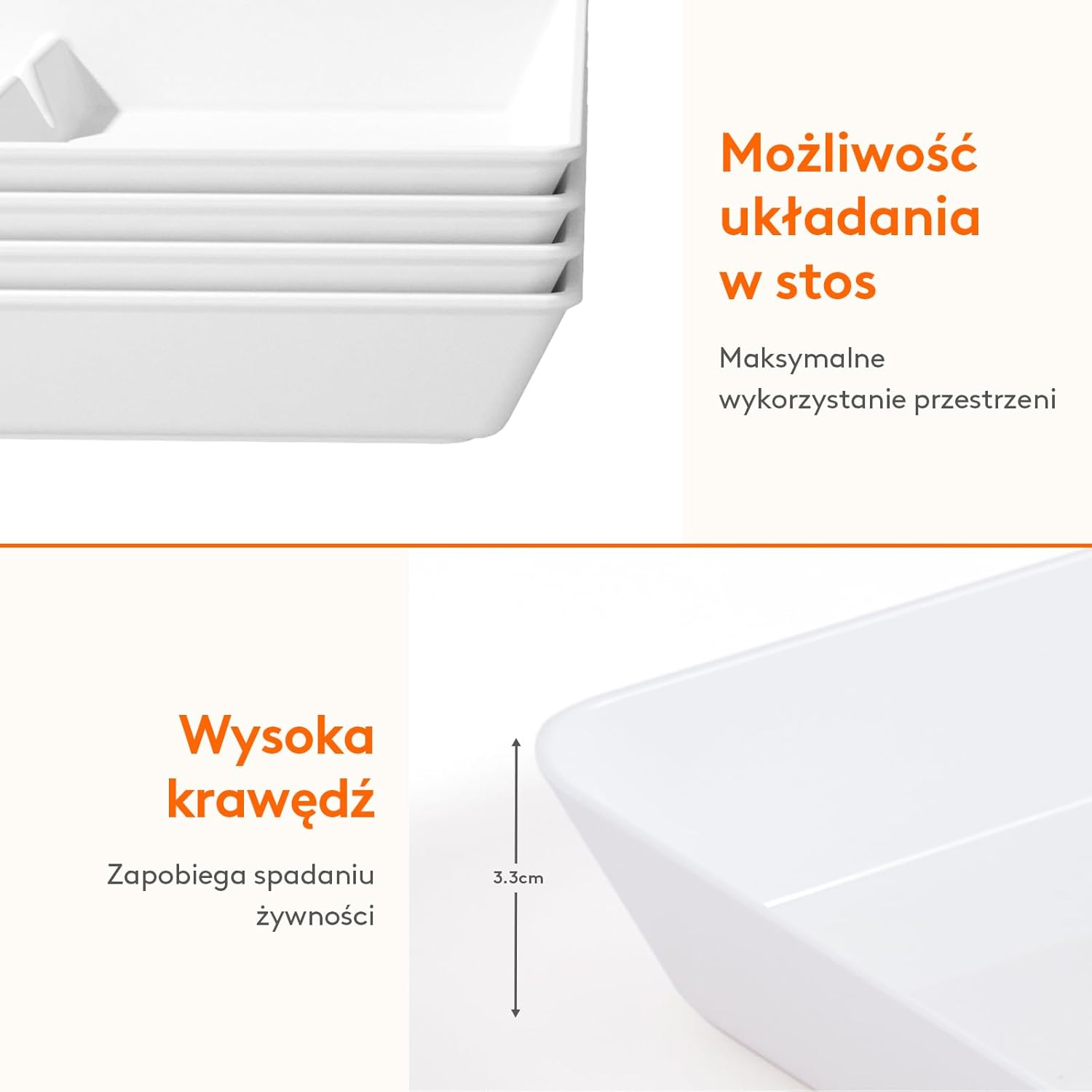 ✅Łatwość czyszczenia: Wewnętrzna powierzchnia tacki na żywność jest gładka i łatwa do czyszczenia. Można ją myć ręcznie lub po prostu przetrzeć wilgotną ściereczką. Dodatkowo, te tace kuchenne można układać w stos, co ułatwia ich przechowywanie i zapewnia porządek, gdy nie są używane.