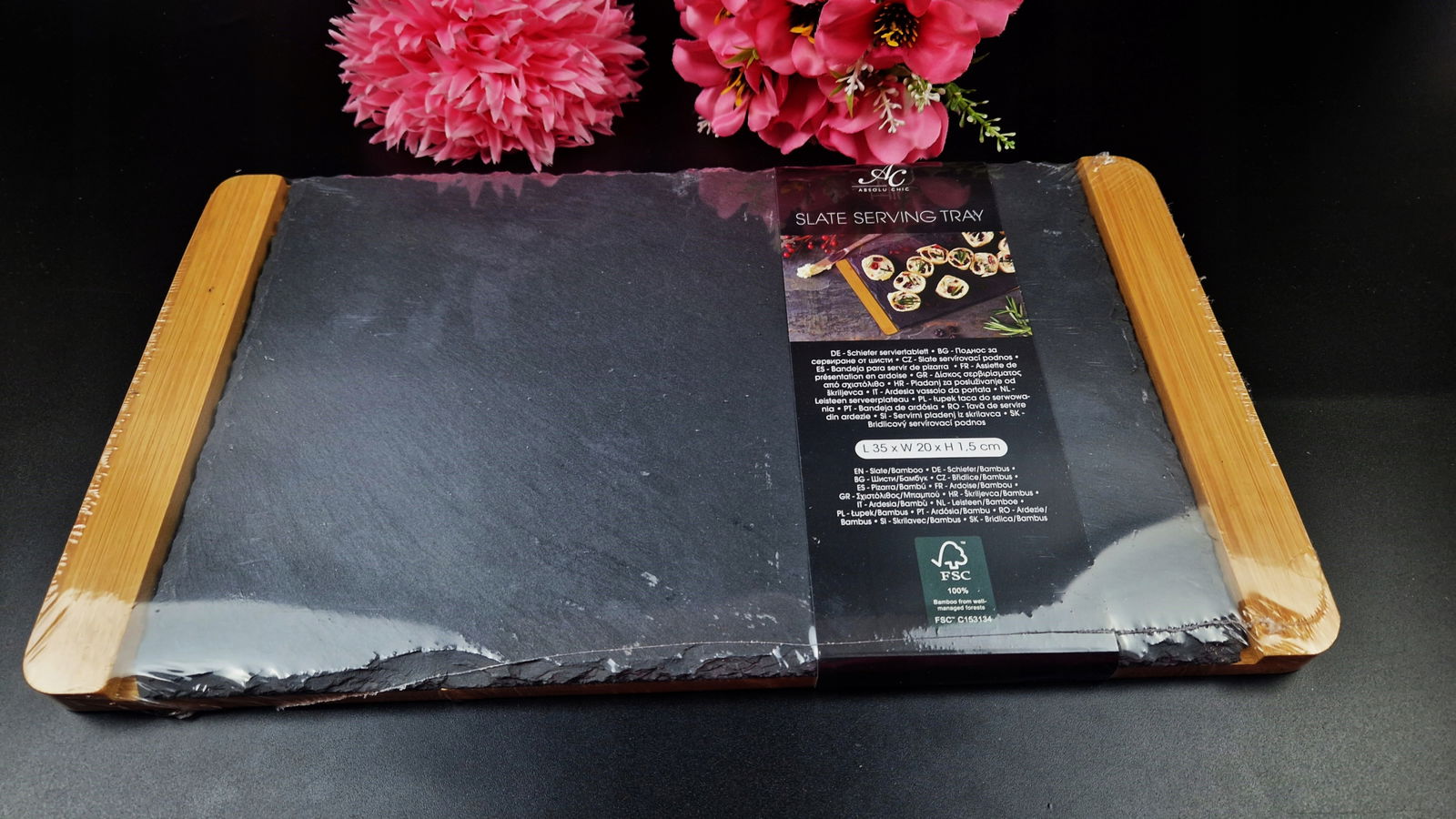 Taca do serwowania z naturalnego łupka  i BAMBUSA Absolu Chic
