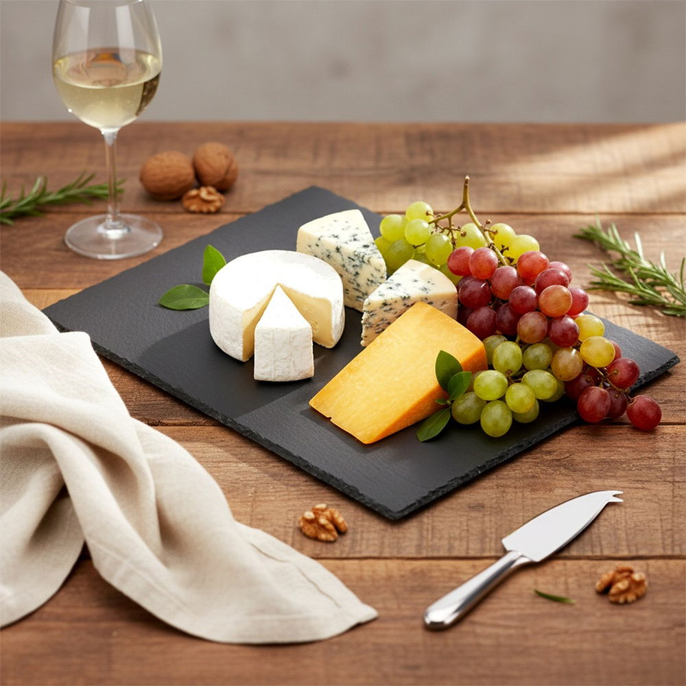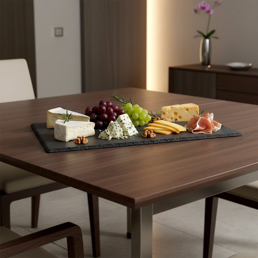 Naturalny kamień - Wykonana z naturalnego łupka kamiennego w czarnym kolorze. Ma chropowatą powierzchnię i oszlifowane krawędzie, co dodatkowo podkreśla jej oryginalny wygląd.
