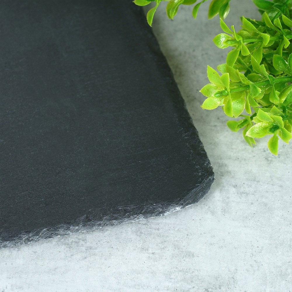 Naturalny kamień - Wykonana z naturalnego łupka kamiennego w czarnym kolorze. Ma chropowatą powierzchnię i nieoszlifowane krawędzie, co dodatkowo podkreśla jej oryginalny wygląd.
