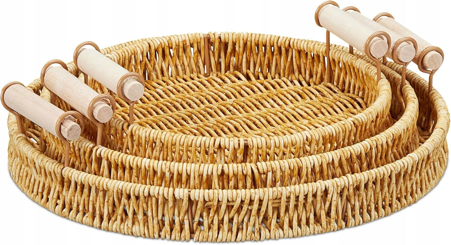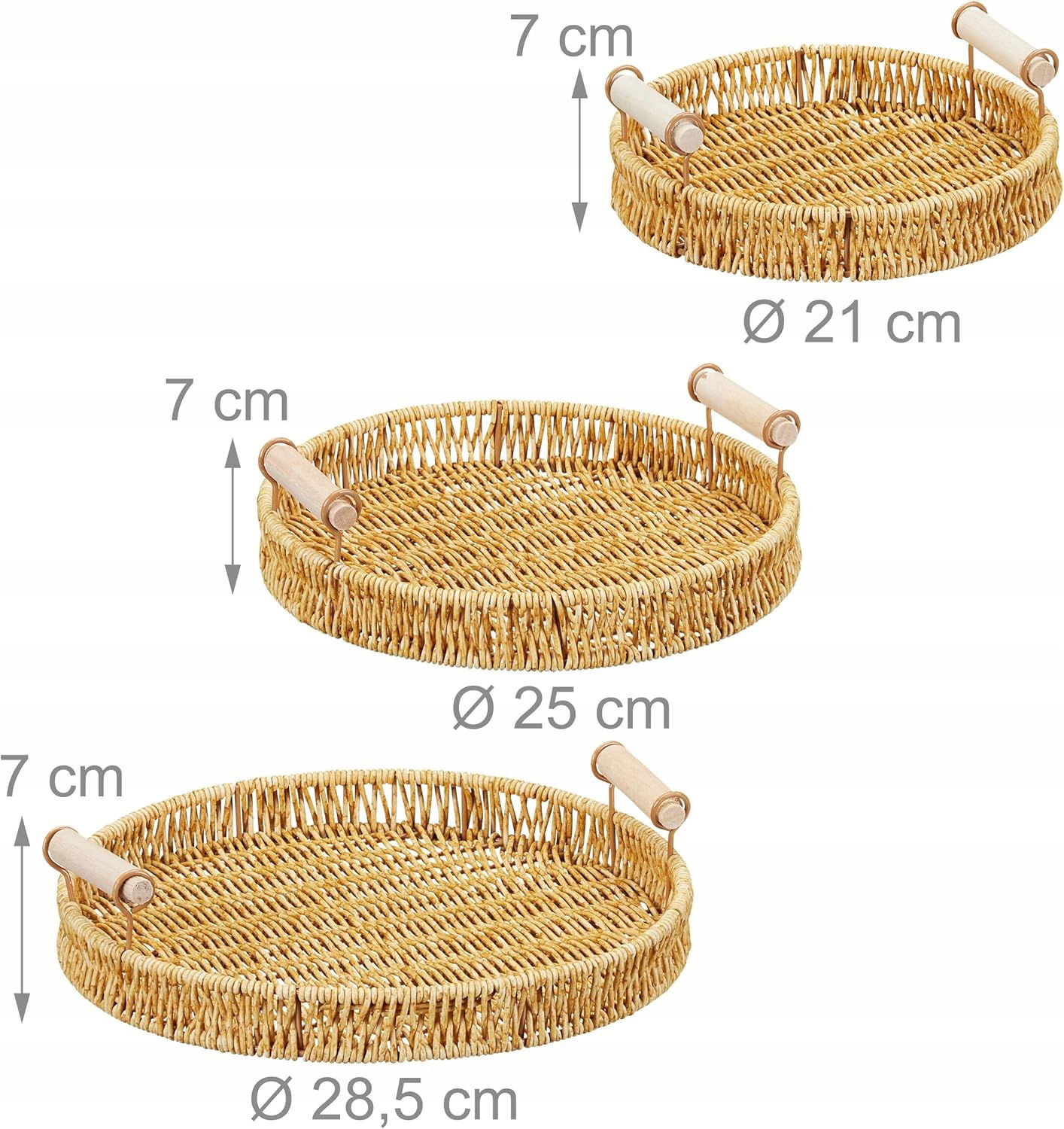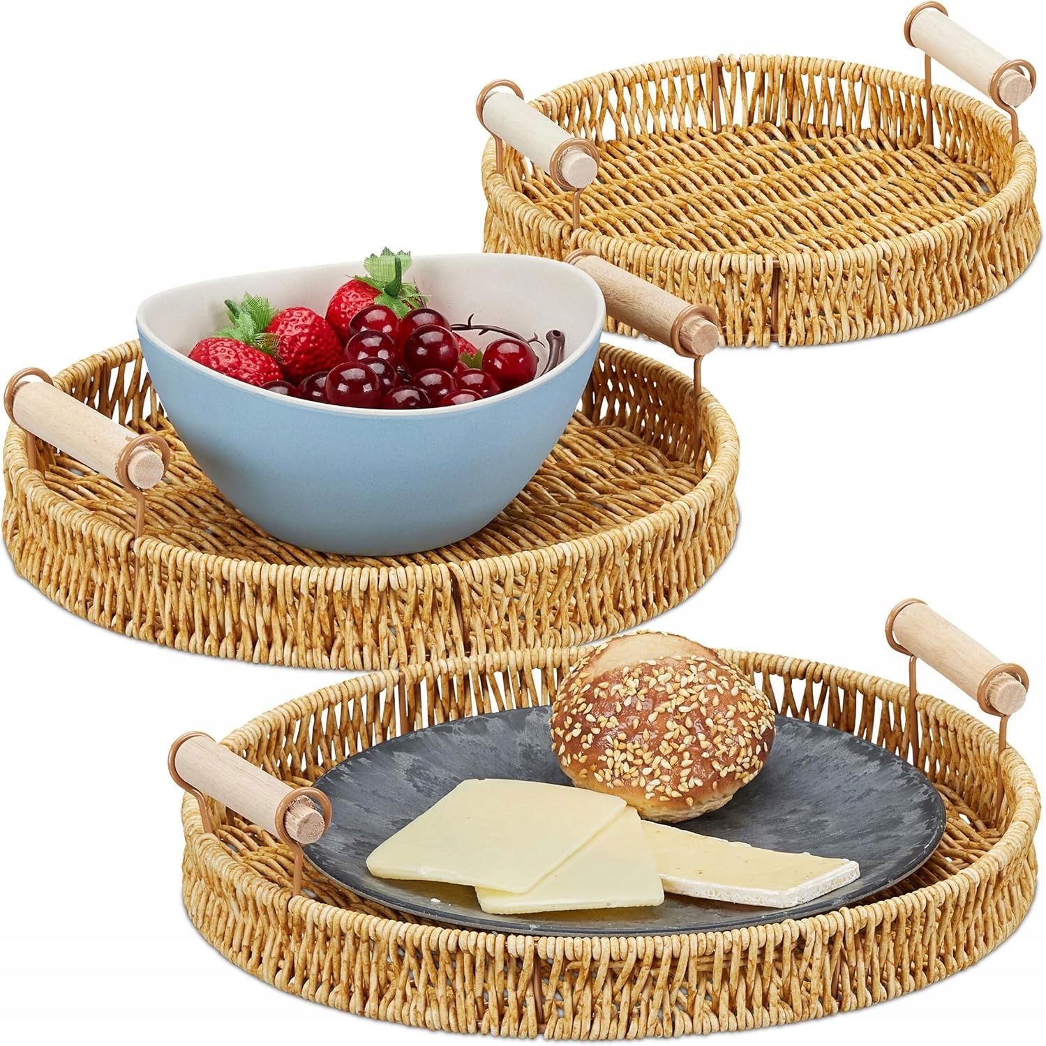 Relaxdays 3-częściowy zestaw tac do serwowania to plecione tace z trawy morskiej z wysoką krawędzią i wygodnymi uchwytami, idealne do przenoszenia, serwowania i dekoracji wnętrz