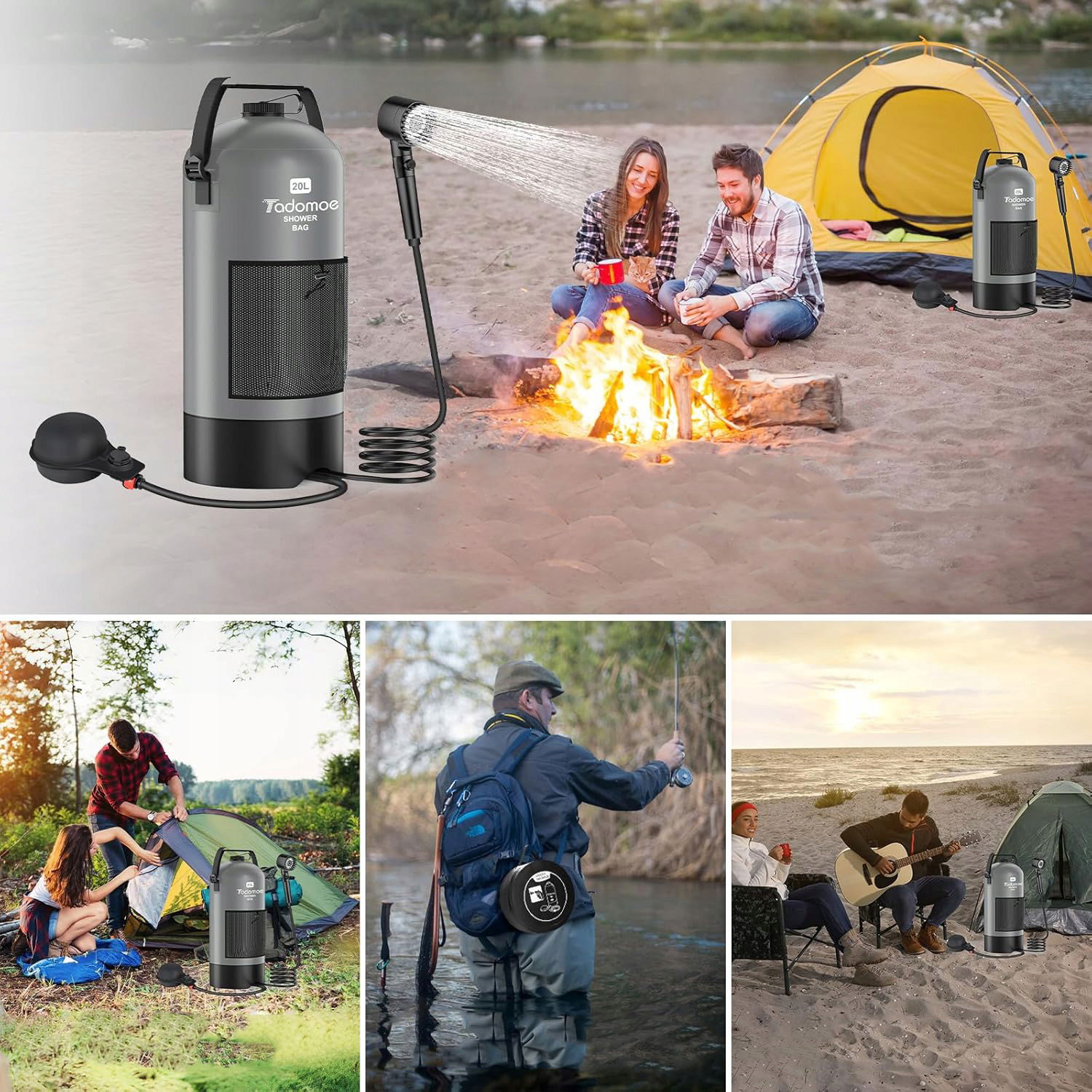 Tadomoe Przenośny prysznic kempingowy turystyczny Przenośny z pompką 20 l