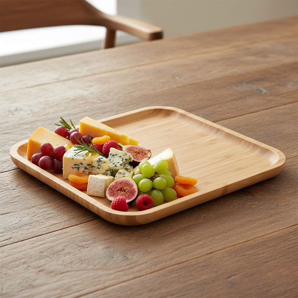 Wykonana z drewna bambusowego - Wykonana jest w całości z naturalnego drewna bambusowego. Odpowiednio użytkowana posłuży długie lata. Odporna na temperaturę do 70°C. Może mieć bezpośredni kontakt z żywnością przez 2 godziny, co pozwala bezpiecznie podawać przekąski, sery, owoce czy ciasta.