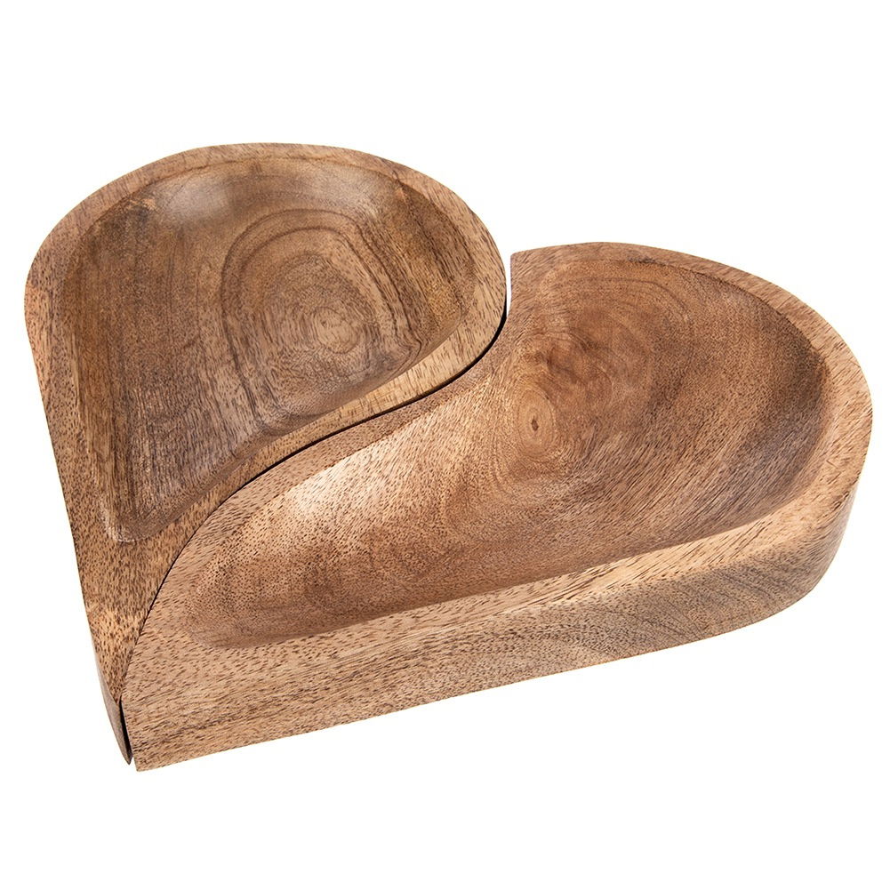 Dwa talerze tworzące efektowne serce - Podział na dwa osobne naczynia pozwala na serwowanie dwóch różnych przekąsek jednocześnie, np. słodkich i słonych, orzechów i bakalii lub ciasteczek i owoców. To praktyczne rozwiązanie, które ułatwia estetyczne i uporządkowane podanie drobnych przysmaków.