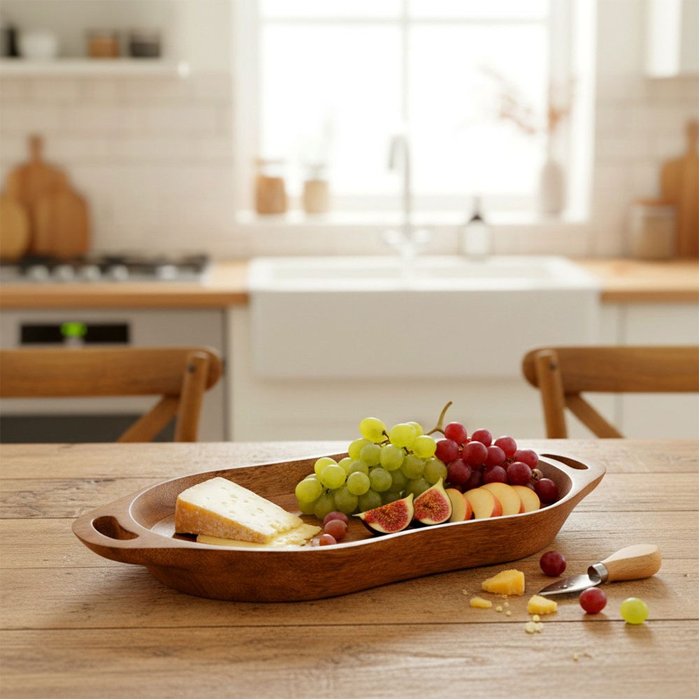 Efektowny element dekoracyjny - Oprócz zastosowania praktycznego, talerz stanowi stylową ozdobę stołu, kuchni lub salonu. Świetnie komponuje się z dekoracjami z naturalnych materiałów. Doskonale sprawdzi się jako część aranżacji stołu, zwłaszcza w stylu rustykalnym, boho lub skandynawskim. Posłuży również jako taca do przenoszenia i serwowania potrwa.