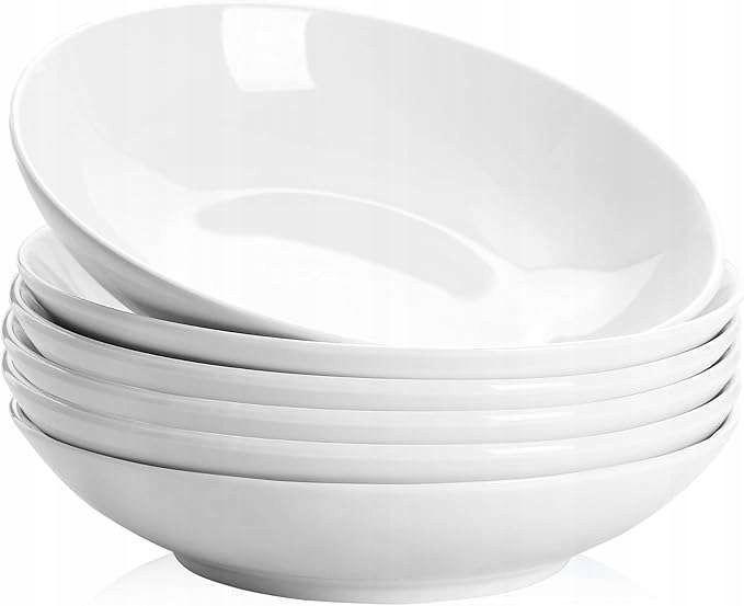 - Najwyższa jakość: Ten zestaw misek do serwowania wykonany jest z porcelany klasy profesjonalnej. Są ciężkie, wytrzymałe i odporne na zarysowania. Zestaw misek do zupy pokryty jest gładką i lśniącą glazurą. Miski o średnicy 9 cali (23 cm) łatwo się czyści i stanowią wykwintne dzieło sztuki kulinarnej.
