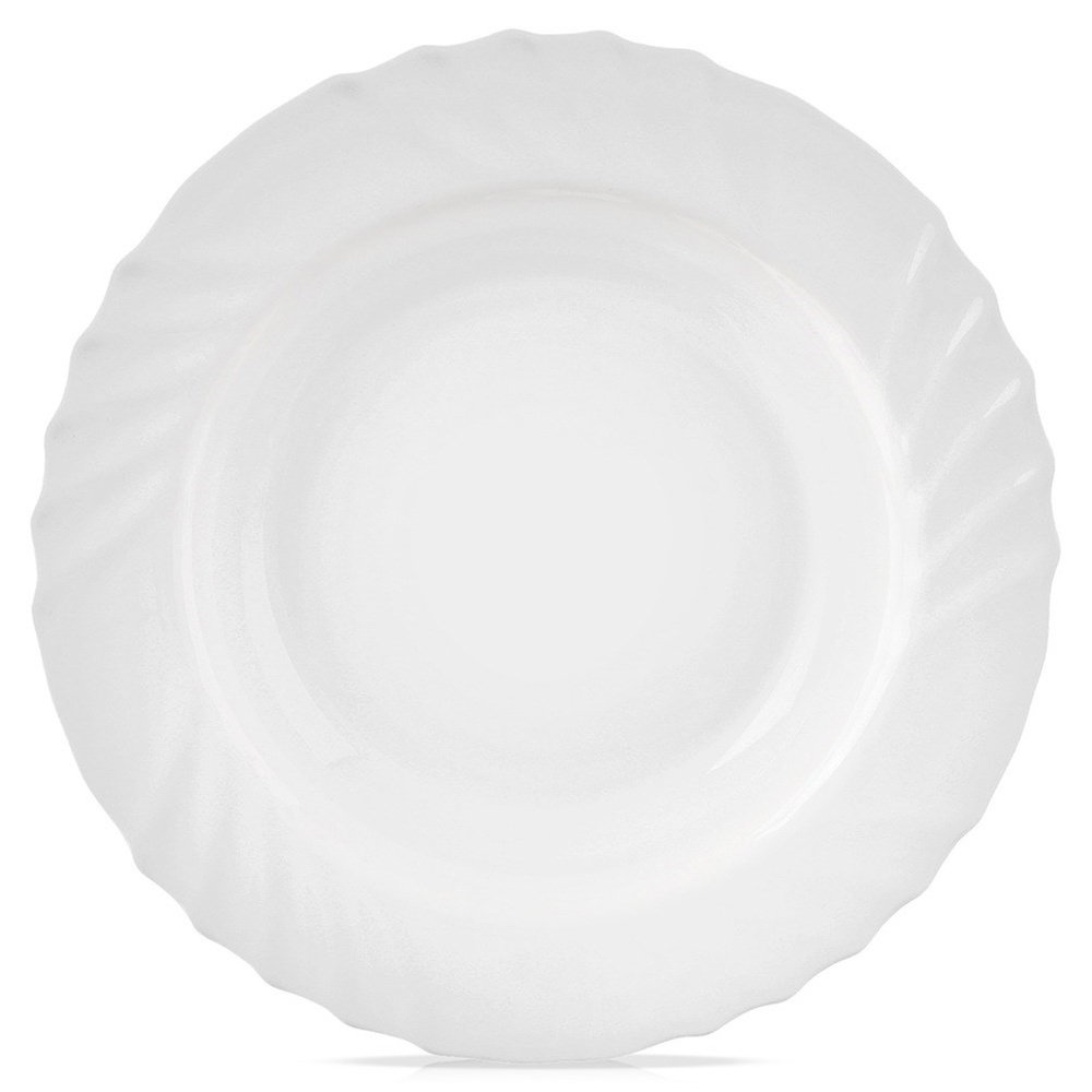Głęboki talerz obiadowy o pojemności 350 ml - Talerz obiadowy, głęboki niezbędny w każdym domu. Idealny do serwowania zup, makaronów czy sałatek, zapewnia wygodę użytkowania dzięki odpowiedniej głębokości. Talerz posiada ozdobny, falowany rant. Talerz ma wymiary 22,5 x 22,5 x 3 cm i pojemność 350 ml. Talerz z serii Luna.