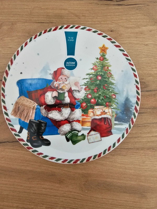 Śliczne talerze deserowe ze świątecznym motywem o średnicy 20 cm. Talerze są nowe.