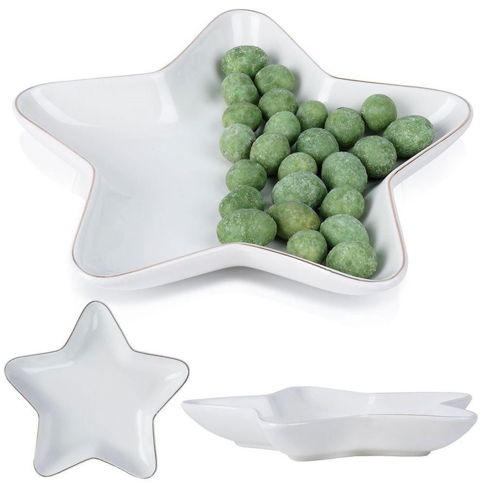 Uniwersalny talerz w kształcie gwiazdy. Idealny jako talerz na przekąski lub różne potrawy, a także jako talerzyk deserowy. Przydatny w każdym domu. Niezwykle uniwersalne zastosowanie sprawi, że będzie często używany. Niezwykle efektowny, będzie pięknie prezentował się na stole również podczas Wigilii. Świetnie sprawdzi się w okresie zimowo-świątecznym. Możemy umieścić na nim również pierniczki i ciasteczka.