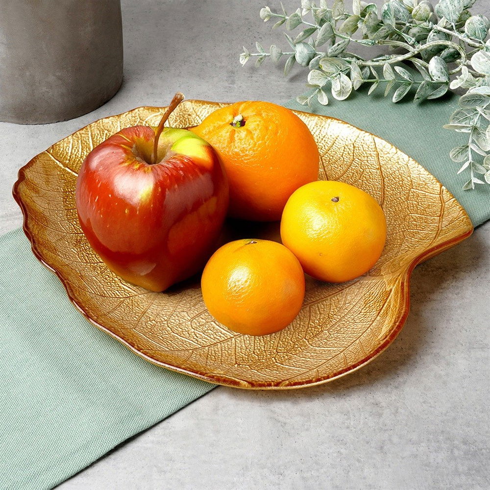 Talerz Złoty Dekoracyjny Taca Patera na Przekąski Dekoracje Liść 27,5x24 cm