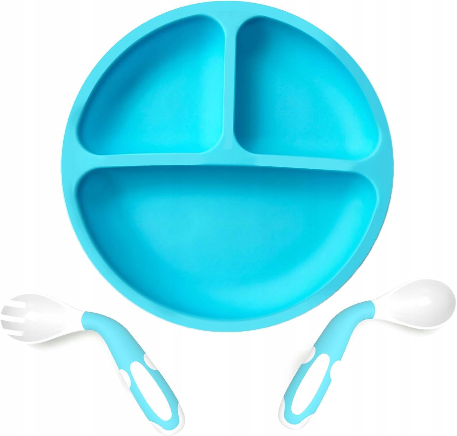 Talerzyk silikonowy dla niemowląt z przyssawką + sztućce łyżka widelec