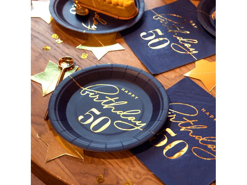 Talerzyki, Happy Birthday "50 lat", granatowe, 18 cm, 6 szt.