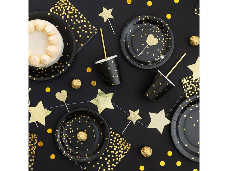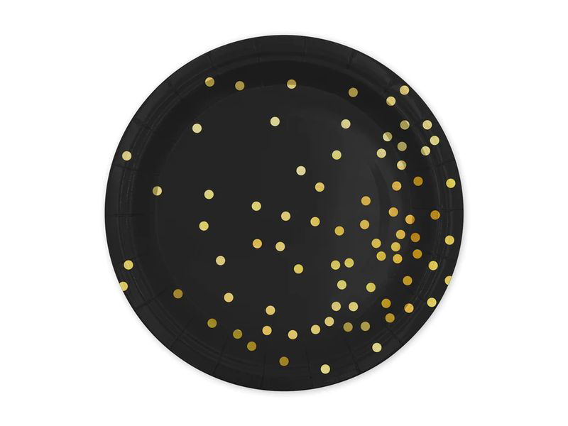 Talerzyki, Okrągłe, czarne w złote kropki, 23 cm, 6 szt.