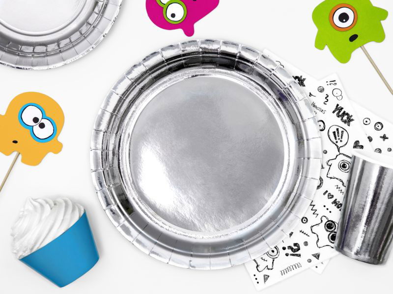 Talerzyki papierowe w kolorze srebrnym, okrągłe . W opakowaniu znajduje się 6 sztuk talerzyków o średnicy 23 cm. Idealnie nadają się na przyjęcia w domowym zaciszu, aby dodać akcent elegancji. Dzięki tak pięknym talerzykom możesz uszczęśliwić przyjaciela lub przyjaciółkę i sprawić mu niesamowitą niespodziankę.