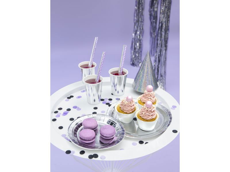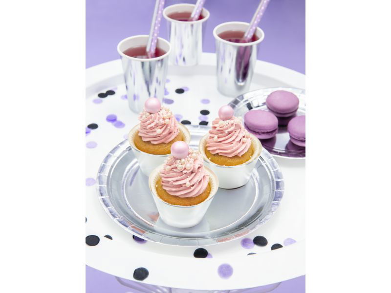 Talerzyki, Okrągłe metalizowane, srebrny, 23 cm, 6 szt.