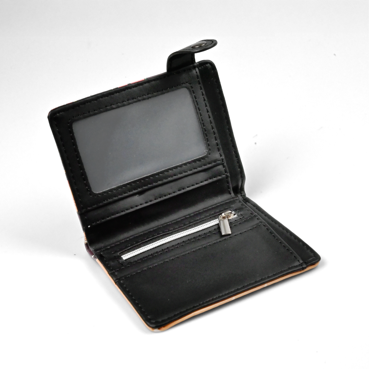 Kiedy drużyna z Demon Slayer trzyma się razem, nawet najciemniejsza noc wydaje się do przejścia — i właśnie ten klimat przenosi do codzienności portfel Tanjiro and Friends. Ma kompaktowe 13 cm i jest wykonany ze skóry ekologicznej, więc dobrze leży w dłoni, a jednocześnie bez problemu mieści się w kieszeni albo w torbie. Z przodu masz ciepły pomarańczowy gradient z „rozsypanymi” jasnymi drobinkami oraz mocne, okrągłe logo w stylu pędzla z czernią i czerwienią, do tego wyraźne japońskie napisy, które od razu kojarzą się z Kimetsu no Yaiba. Po drugiej stronie jest już czysta frajda dla fana: cztery znajome twarze w uroczej, chibiowej scenie, na tle kolorowych bloków wzorów (od zielonych kratek po różowe geometryczne motywy i fale). Czarny pasek na zatrzask z metalowym guzikiem trzyma całość pewnie, a w środku czeka czarne wnętrze z okienkiem na dokument oraz kieszonką na monety na zamek ze srebrnym uchwytem — idealnie na drobniaki i małe „niezbędniki”. To portfel, który wygląda świetnie na konwencie, dodaje uroku na co dzień i jest gotowym prezentem dla każdego fana — śmiało, niech dołączy do Twojej kolekcji.