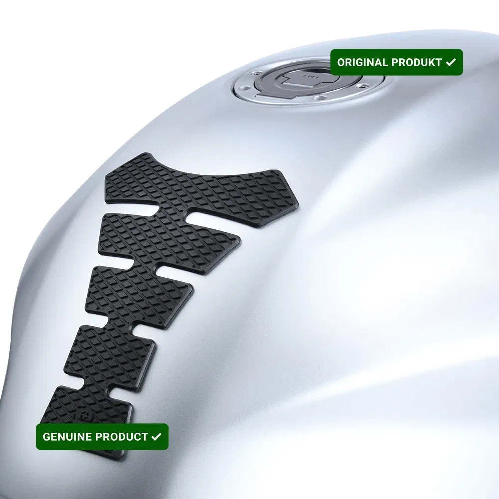 - Tankpad powinien być naklejany w temperaturze powyżej $20°C$. W niższych temperaturach klej nie osiąga pełnej polimeryzacji, co powoduje przesuwanie się naklejki pod naciskiem ciała kierowcy, co może doprowadzić do zabrudzenia odzieży motocyklowej klejem chemicznym.