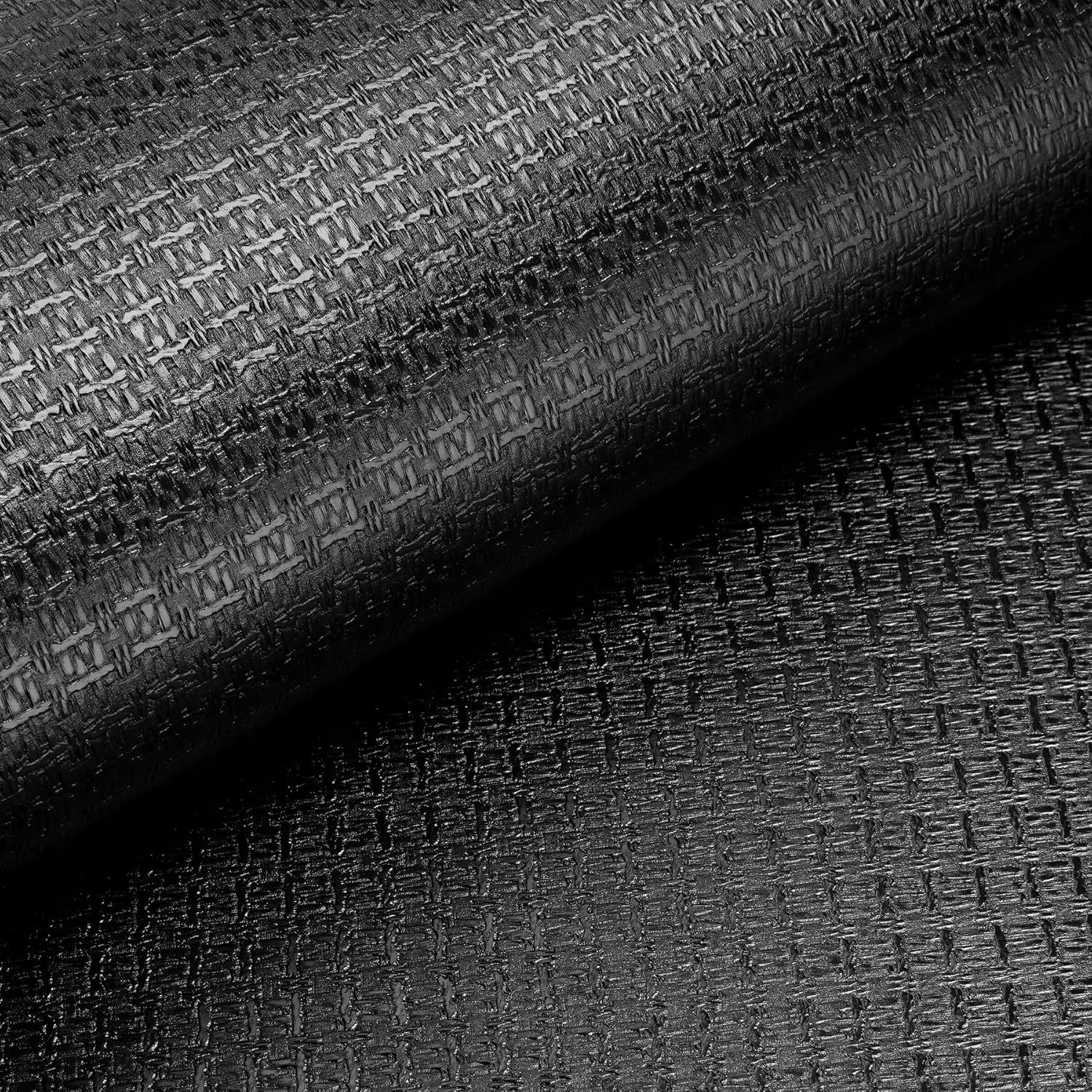 Samoprzylepna folia meblowa z czarnym wzorem Czarna, dzianinowa tapeta ze wzorem posiada siatkę na odwrocie umożliwiającą precyzyjne pomiary. Można stosować na powierzchniach gładkich i płaskich. Jak gładkie ściany, szkło, drewno, plastik, kafelki.