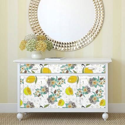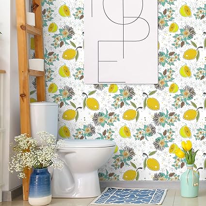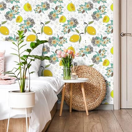 Tapeta VEELIKE Białe kwiaty 44,5 cm × 300 cm Cytrynowa akwarela Mural Tapeta Tropikalne liście Naklejki na meble Wodoodporny papier samoprzylepny Łazienka KUCHNIA