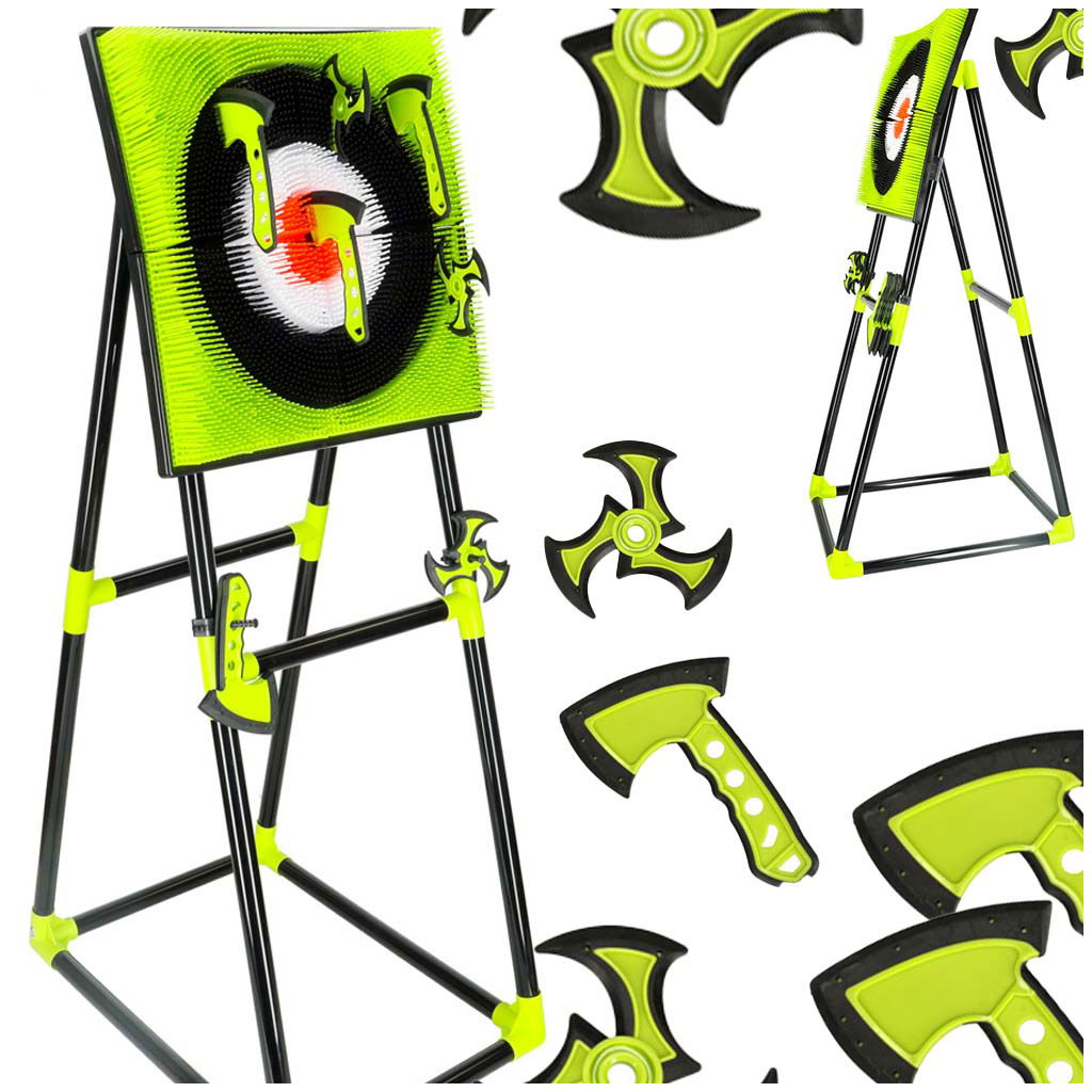 NAJWYŻSZA JAKOŚĆ - Siekiery i shuriken’y wykonane z wytrzymałego plastiku z silikonowymi krawędziami, zapewniają bezpieczeństwo podczas zabawy. Stabilny stojak z uchwytami na akcesoria pozwala na łatwe przechowywanie wszystkich elementów zestawu i szybkie przygotowanie do zabawy. Kolejny trening swoich umiejętności będzie można wykonać w dowolnej chwili!